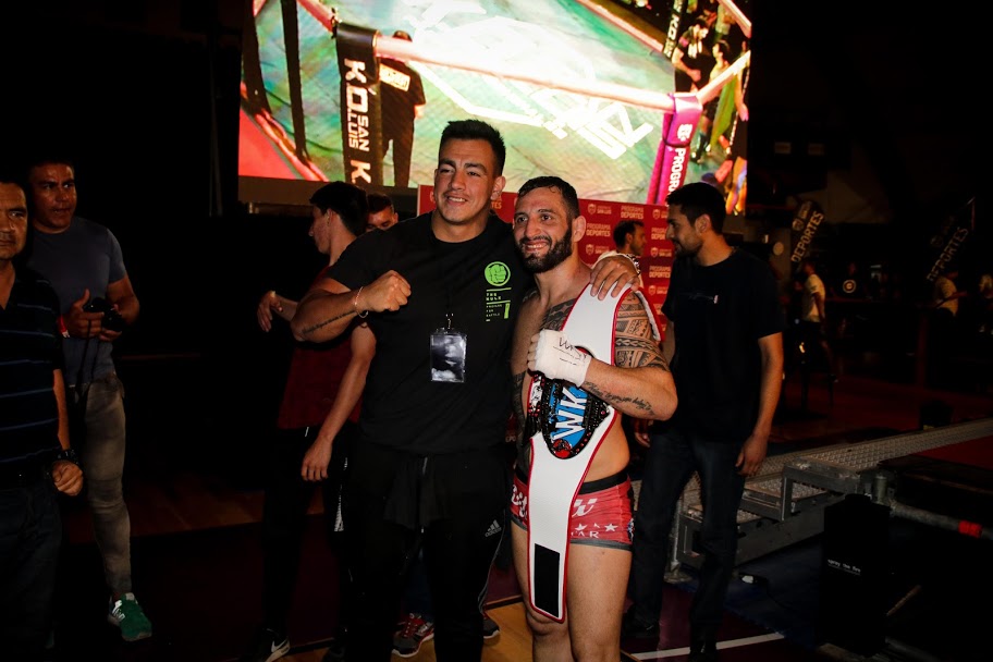 Seguidamente, subieron a la jaula el argentino Fernando “Pitbull” Martínez y el uruguayo Brian Araujo. El argentino tuvo que superar las dificultades puestas por el charrúa, hasta que en el tercer round se quedó con el título sudamericano de la WKN por sumisión, a la expectativa de un título mundial.