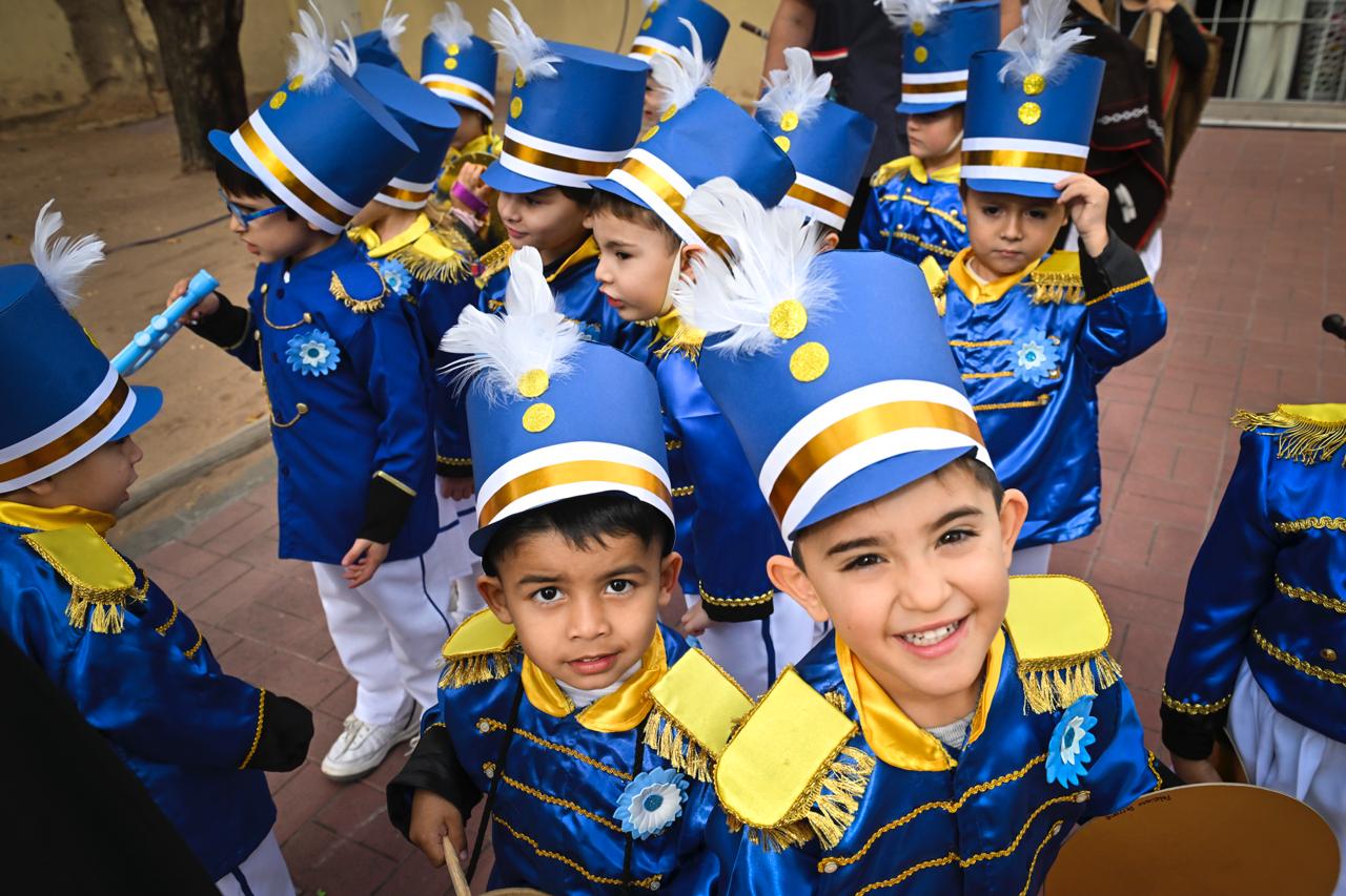 Tras la entonación de las estrofas del Himno Nacional hizo su paso por el palco la Virgen de Luján, representada por una alumna de la sala de 4 años. Posteriormente, la banda infantil, los gauchos y paisanas, las damas y los caballeros, los candomberitos y las vendedoras ambulantes alegraron la tarde de los presentes con sus encantadoras presentaciones, bailes y actuaciones. La Banda Militar ‘Juan Pascual Pringles’ fue la encargada de musicalizar con marchas patrias la actividad e impresionar a los pequeños que robaron la atención del público.