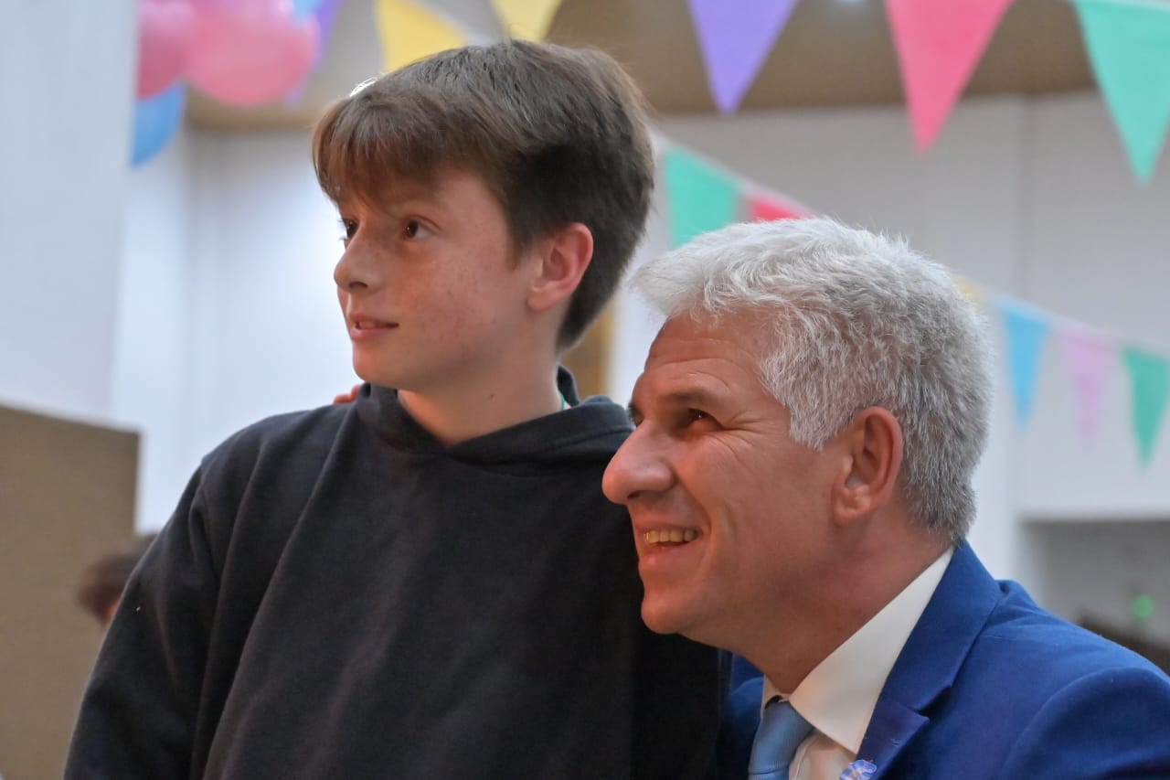 El Primer Mandatario acompañó la celebración, en lo que marcó su primera visita al colegio desde que asumió su segundo mandato. En su arribo, fue recibido por el cuerpo directivo de la institución, incluyendo la rectora del Nivel Secundario, Andrea Cardona, quien destacó: “Es un gran honor que nos visite el Gobernador en este día tan especial para la escuela, un hermoso momento que esperamos con muchas ansias. Nos alegra que comparta con nosotros la vida del colegio”.