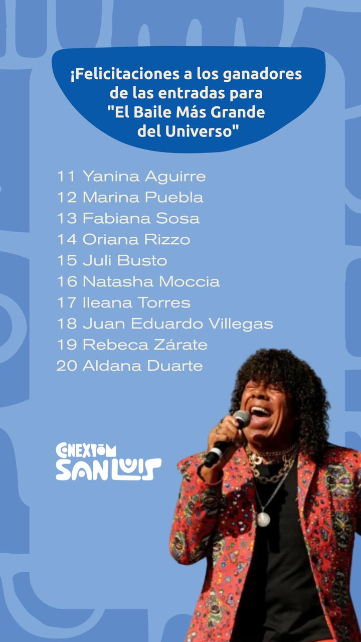 Ganadores del sorteo de las 20 entradas generales para ‘El Baile Más Grande del Universo’