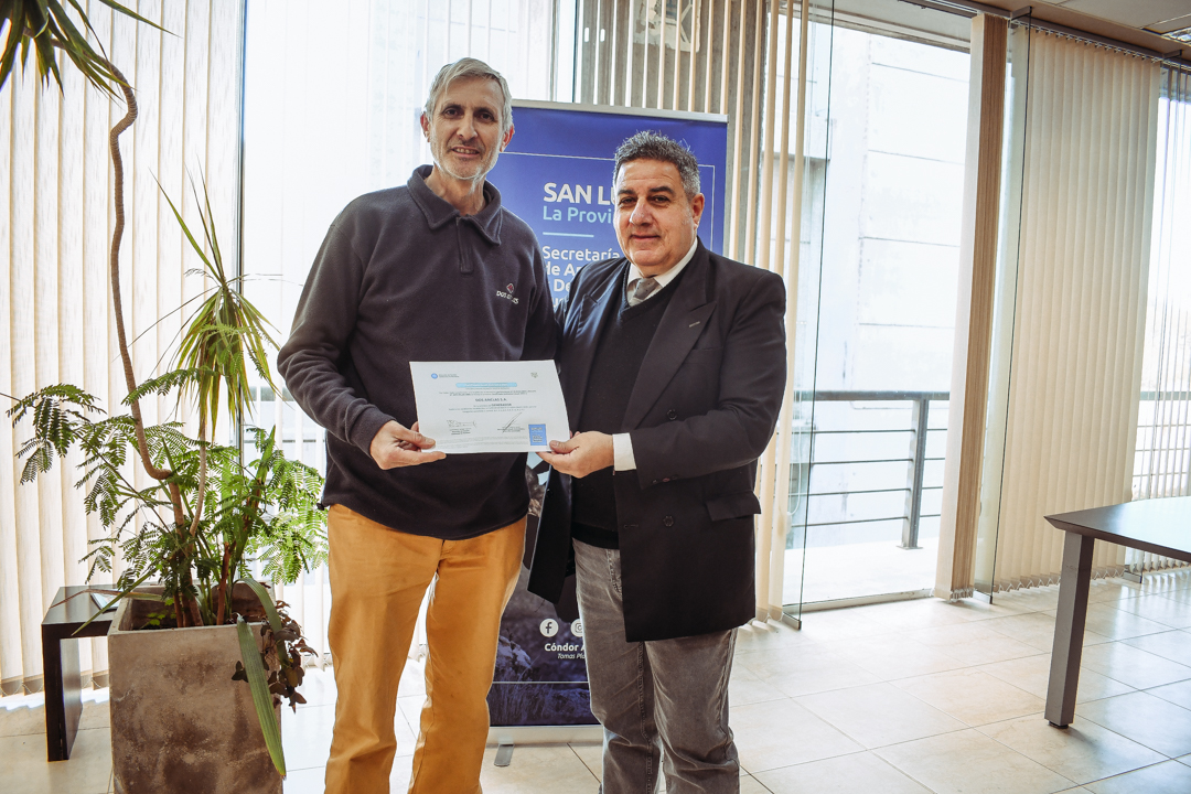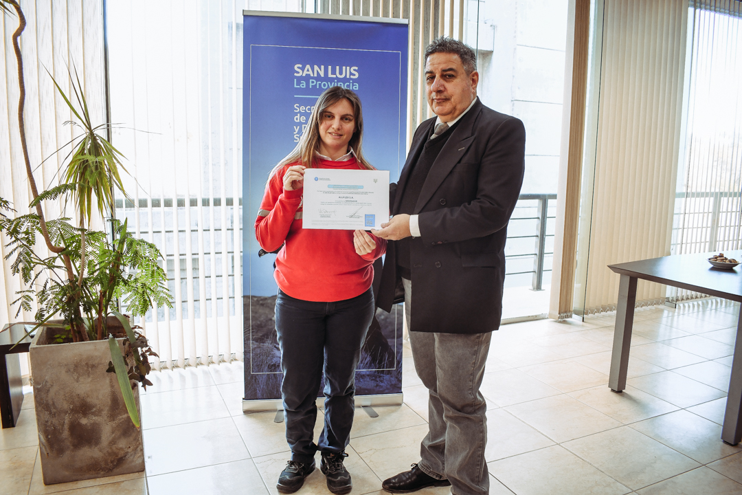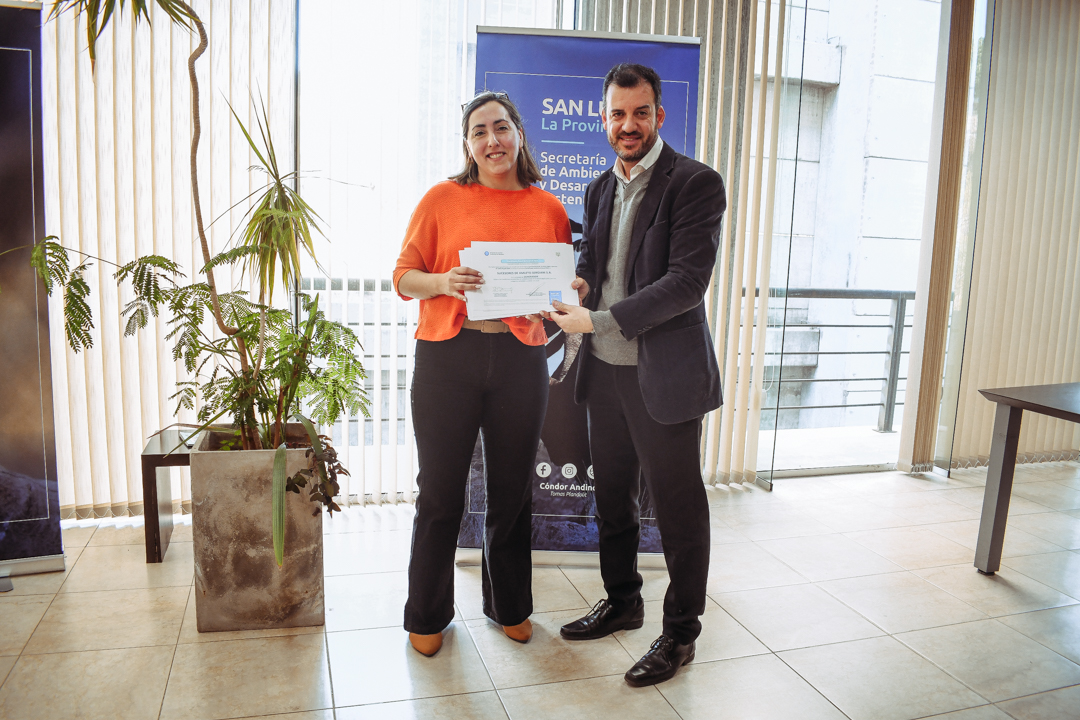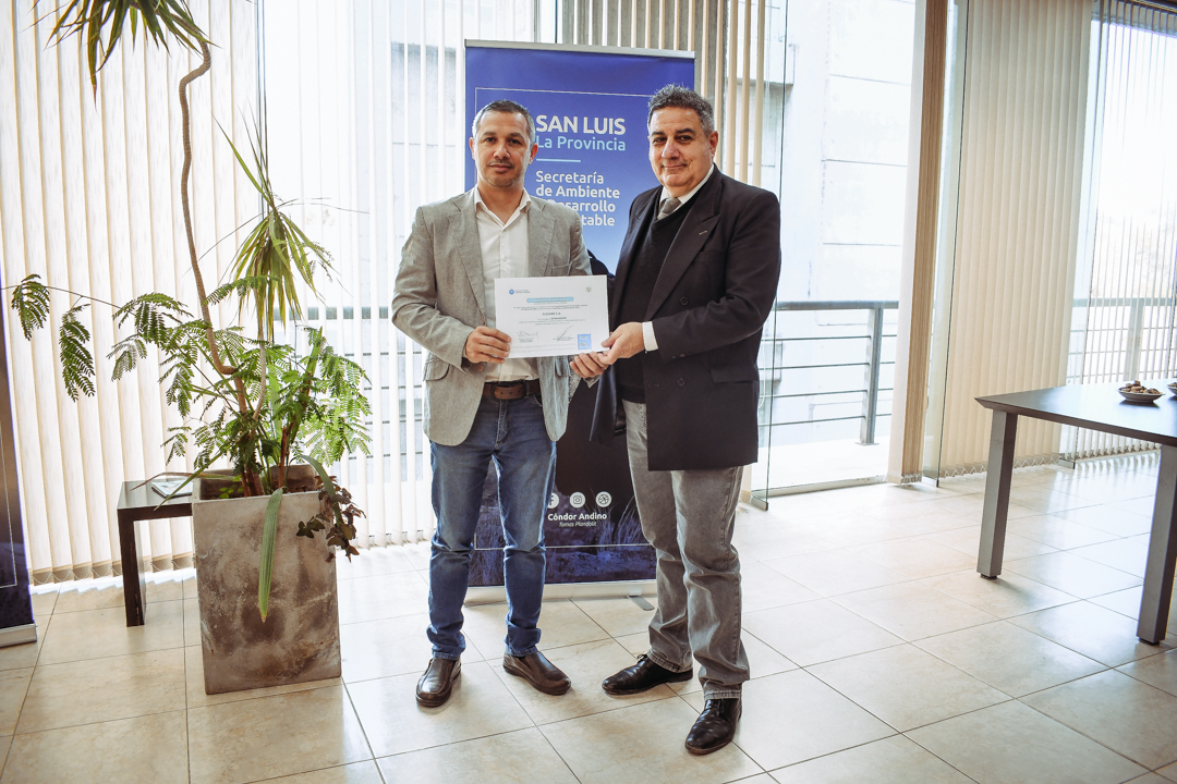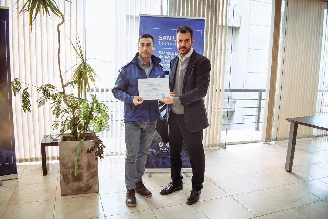 La acción a cargo de la cartera ambiental tiene como objetivo involucrar a todos los sectores de la sociedad en el cuidado del patrimonio natural de San Luis. La actividad de entrega de certificados estuvo encabezada por el secretario de Ambiente y Desarrollo Sustentable, Federico Cacace y el director de Gestión Ambiental de Residuos, Aníbal Cattáneo.