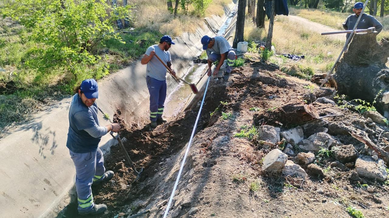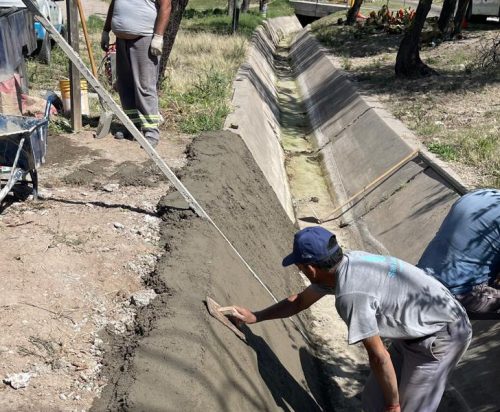 Se ejecutan distintas tareas de conservación en el sistema, reparando losas y removiendo árboles en el cauce del canal. Este sistema abastece a la cisterna de los acueductos San Luis y Parque Industrial, por lo cual las intervenciones se realizan de manera planificada.