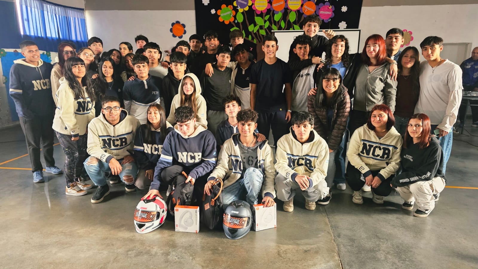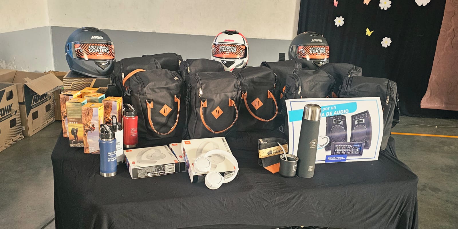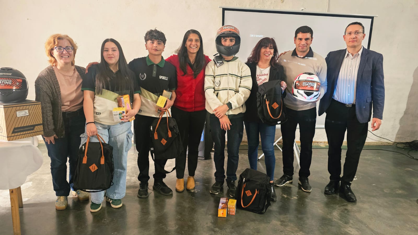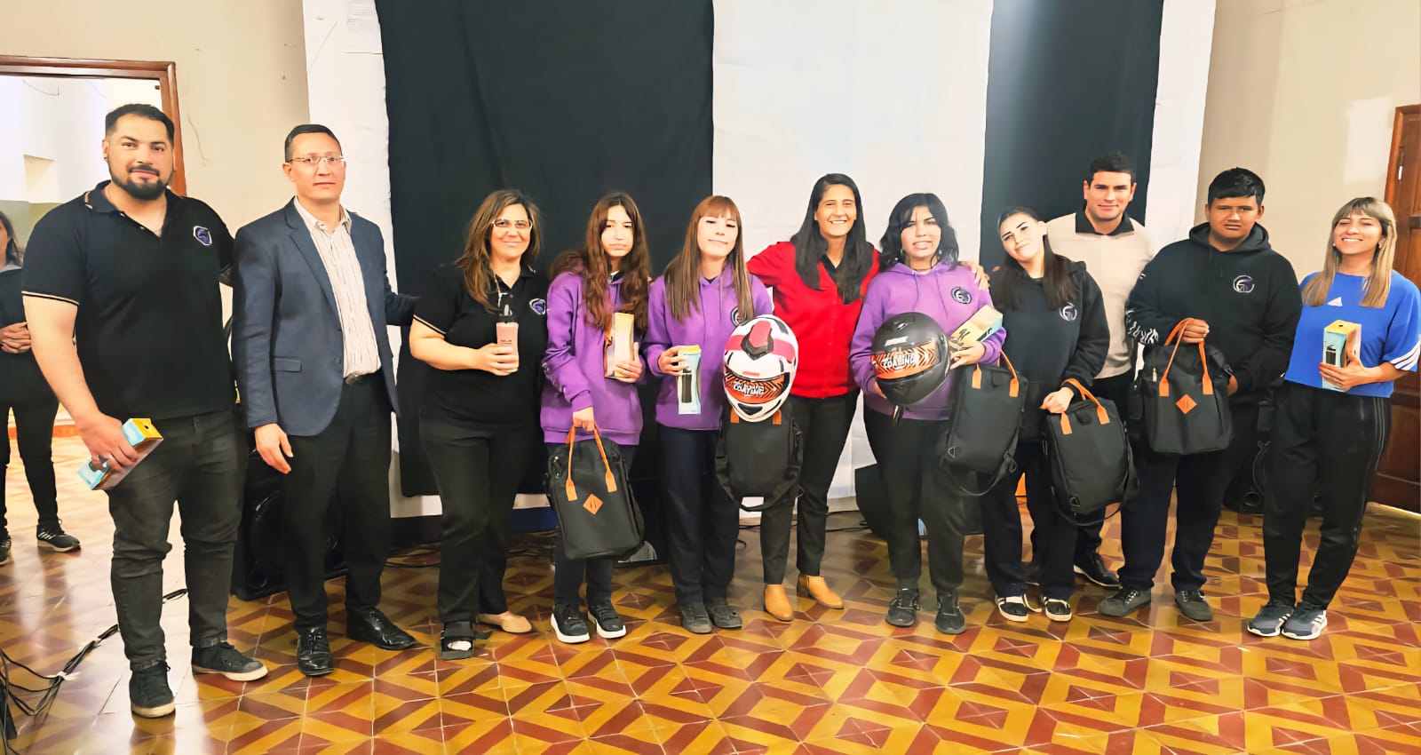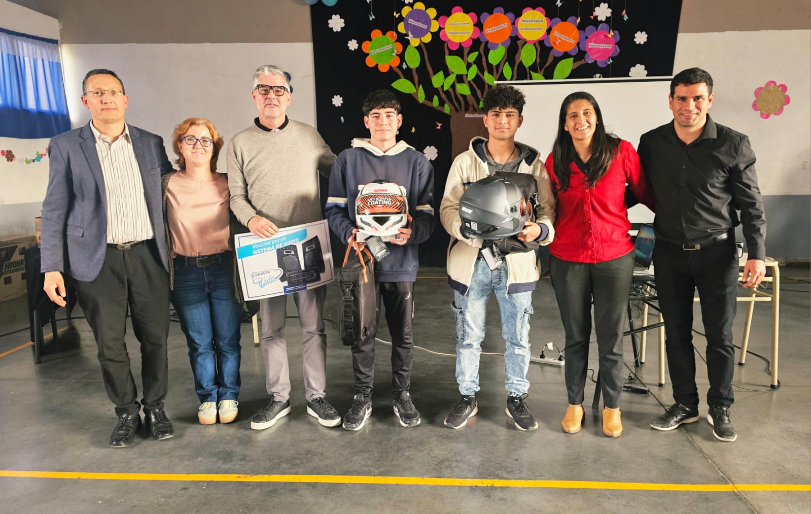 Los premios consistieron en relojes digitales, auriculares, sets materos, cascos y botellas personalizadas. Para el primer premio, además, se entregó un equipo de audio para la escuela.