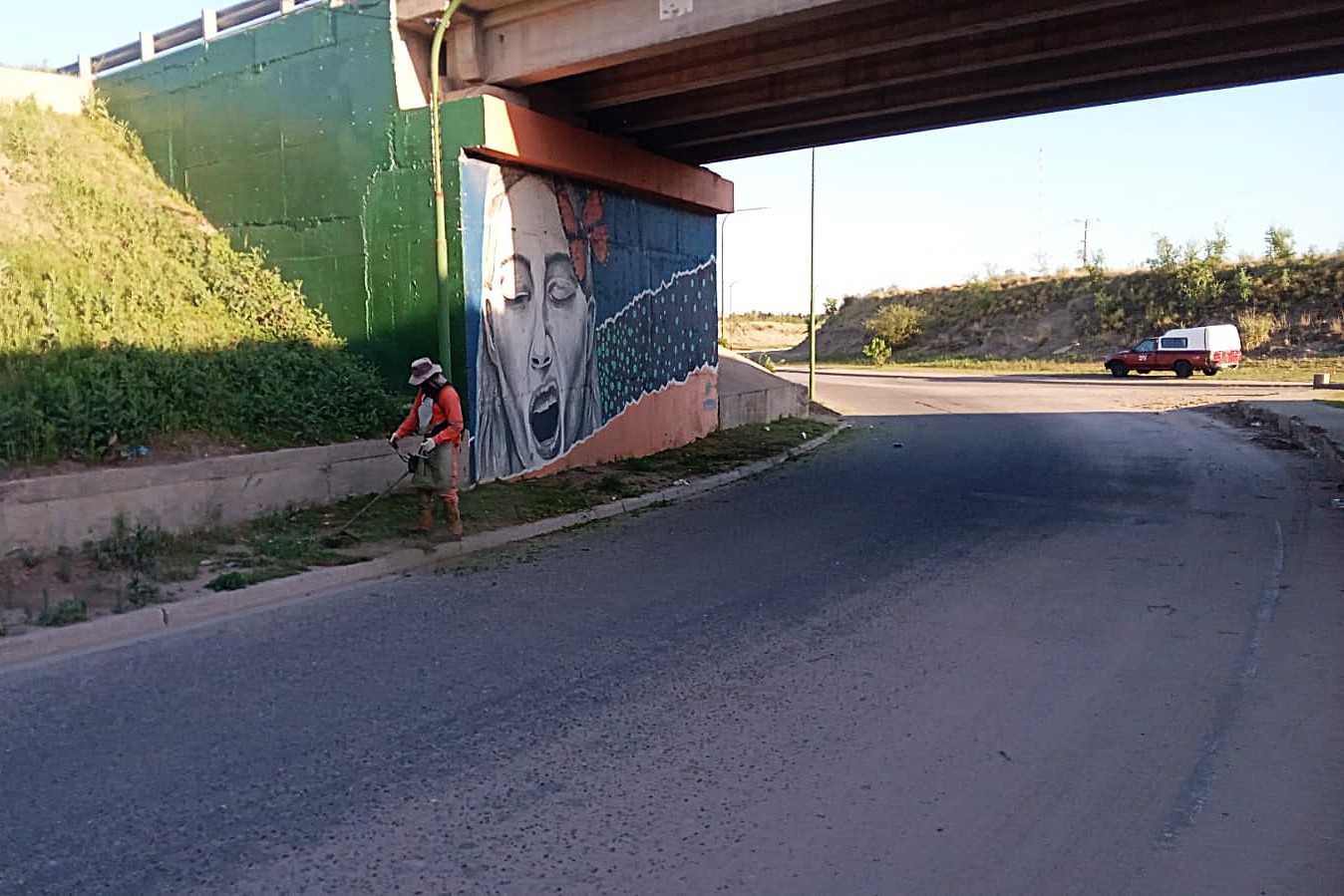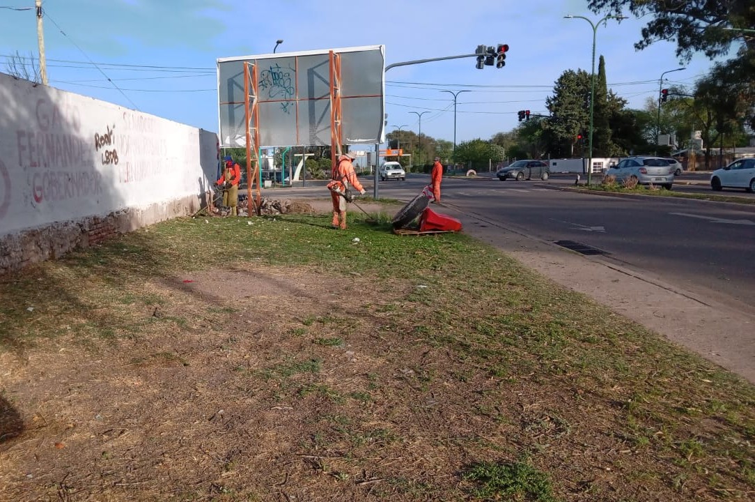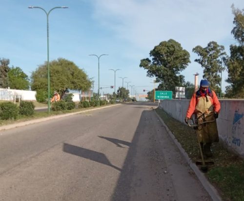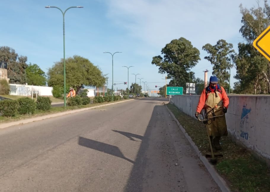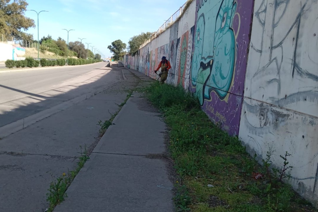 En la ciudad de San Luis se realizaron trabajos de limpieza y corte de pasto en la avenida Eva Perón, desde calle Riobamba hasta la zona de Casa de Gobierno, además del desmalezado en la rotonda frente al Hospital Central ‘Dr. Ramón Carrillo’.