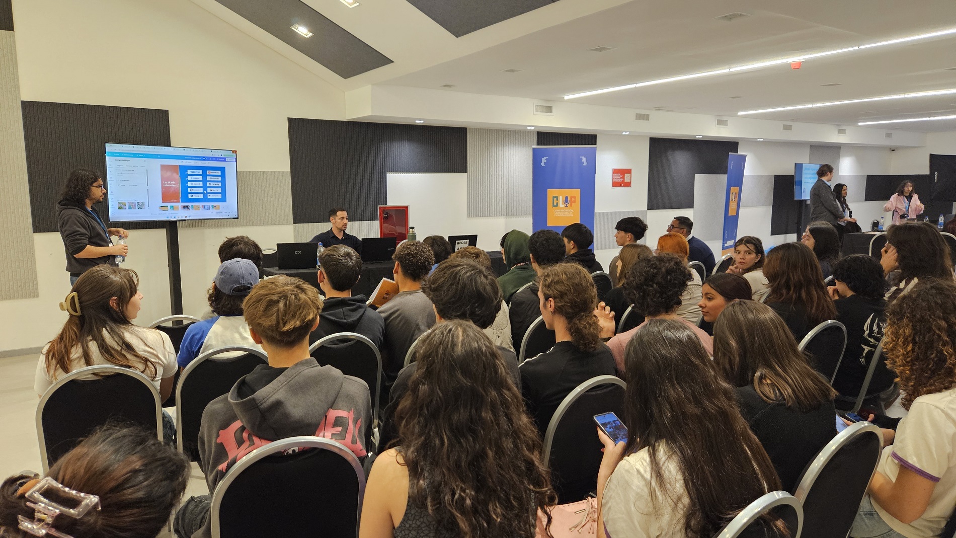 La Expo Educativa ‘Tu Futuro Está Aquí’, abrió sus puertas a las 9:00 de este jueves y en minutos se colmó de alumnos de diversas escuelas. Aquellas con orientación en Comunicación o que cuentan con materias afines, aprovechan la propuesta de CLIP para sumar experiencias y conocimiento a partir de la variada propuesta de formación que incluye, inteligencia artificial, redacción multimedia y producción audiovisual, además de manejo de cámaras y la opción de ser presentadores de TV y periodistas por un día.