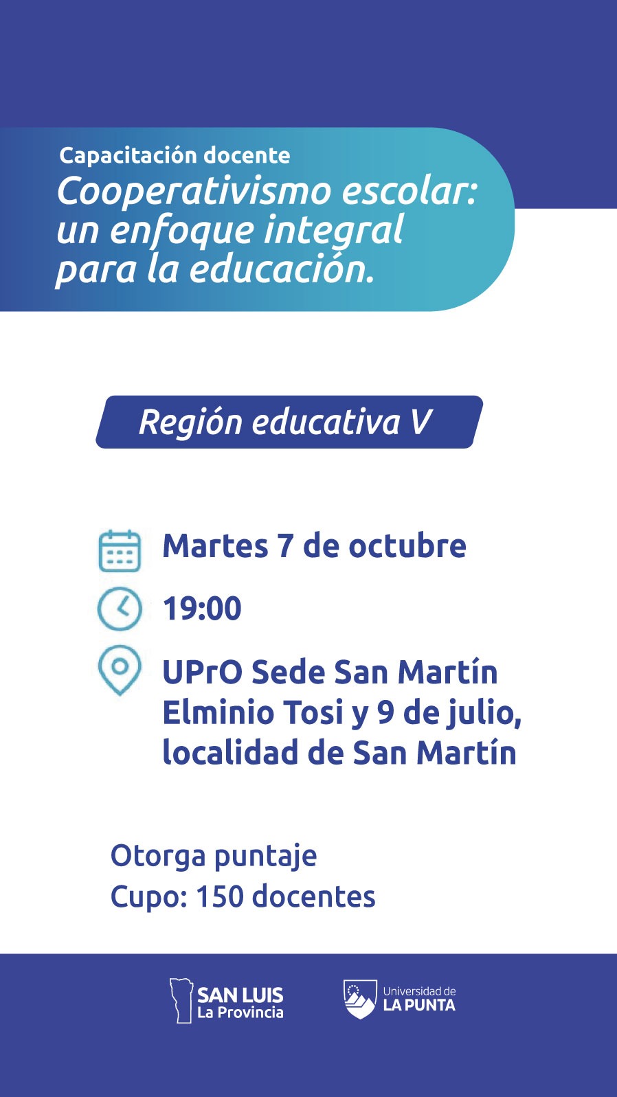Más de 430 docentes de San Luis ya se capacitaron en cooperativismo escolar y, en los próximos días, con un cupo de 150 personas, la formación se dictará para la Región Educativa V, completando así la totalidad de las regiones.