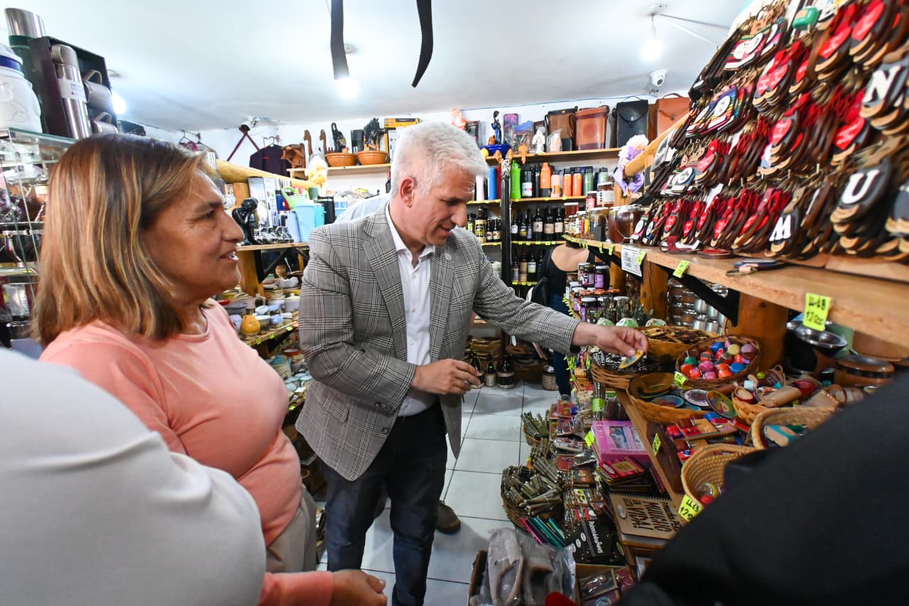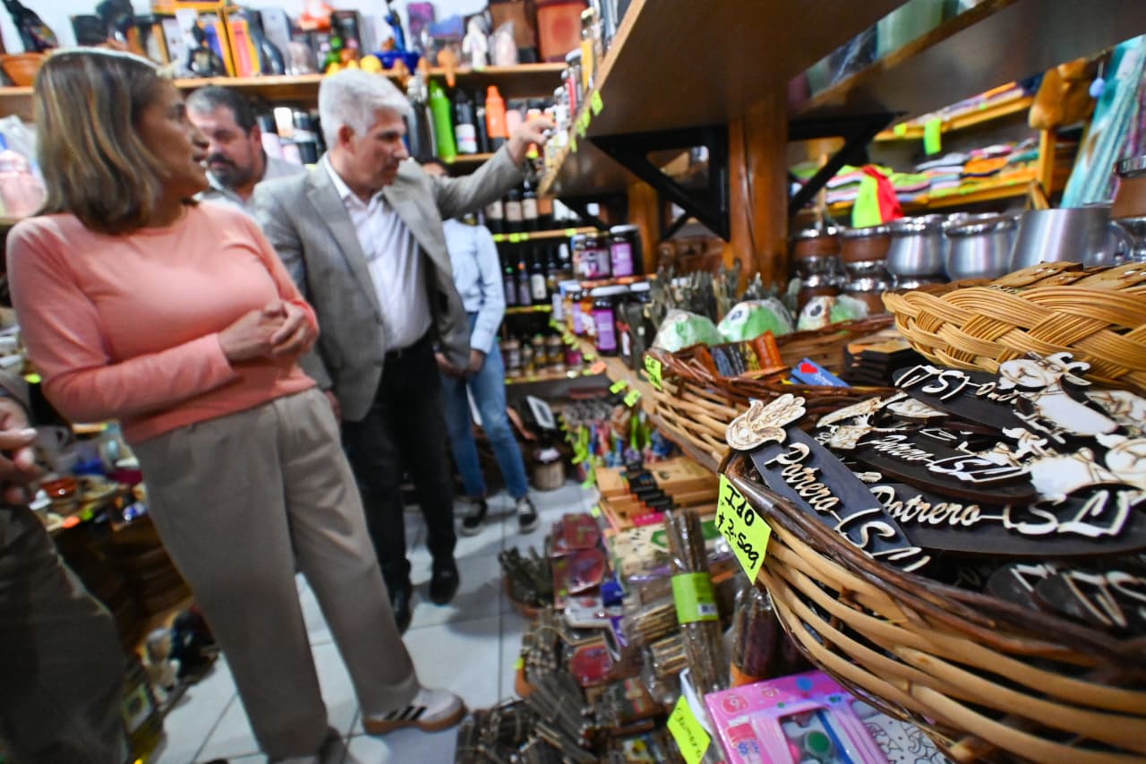 Este jueves, en la continuidad de su agenda dedicada al acompañamiento del espíritu emprendedor, el gobernador Claudio Poggi pasó por ‘El Algarrobo Regionales’, un proyecto que dedica su tiempo a la elaboración de productos artesanales regionales y de regalería. Durante su visita al local ubicado en el circuito de Potrero de los Funes, el Primer Mandatario recorrió las estanterías repletas de tazas, remeras, mates y demás, todos con el sello artesanal de Juana Ventura, socia del emprendimiento y sin perder la esencia de la región.