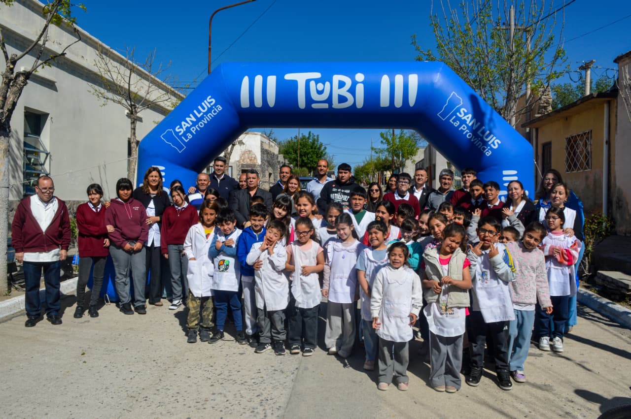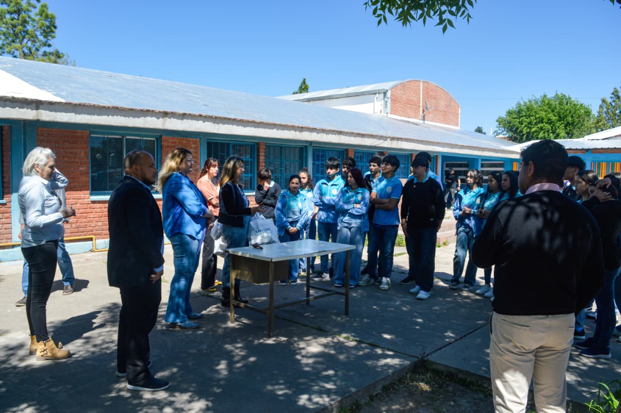 La primera institución visitada fue la Escuela N°104 ‘Domingo Faustino Sarmiento’ de Paso Grande, donde cuatro estudiantes de la Escuela Pública Digital N°22 (EPD), que funciona dentro del mismo establecimiento, recibieron sus TuBi. Cianchino estuvo acompañado por el subdirector de Infraestructura del ministerio de Educación, Adrián Zapata; la diputada por San Martín, Regina Zulema Funes; el intendente, Rodrigo Barroso; la directora de Comunidad Educativa, Celeste Aparicio y el director del colegio, Juan Escudero.