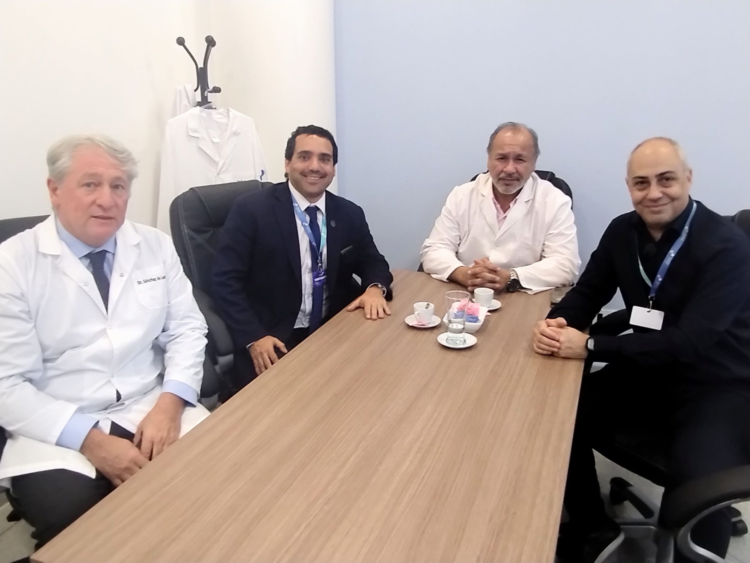 El director general del Hospital Central, Adolfo Sánchez de León, junto con el jefe de Docencia e Investigación, Javier Tapia, recibieron al jefe del Servicio de Kinesiología del Hospital Universitario Fundación Favaloro, Sergio Di Yelsi, y al vicerrector de la Universidad Nacional de Villa Mercedes (UNViMe), Santiago Farenga. Juntos realizaron un recorrido por las instalaciones de la institución para analizar posibles actividades conjuntas.