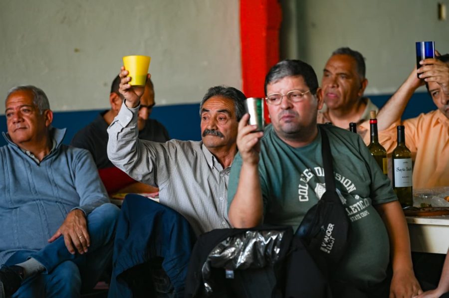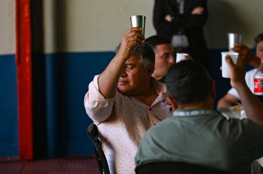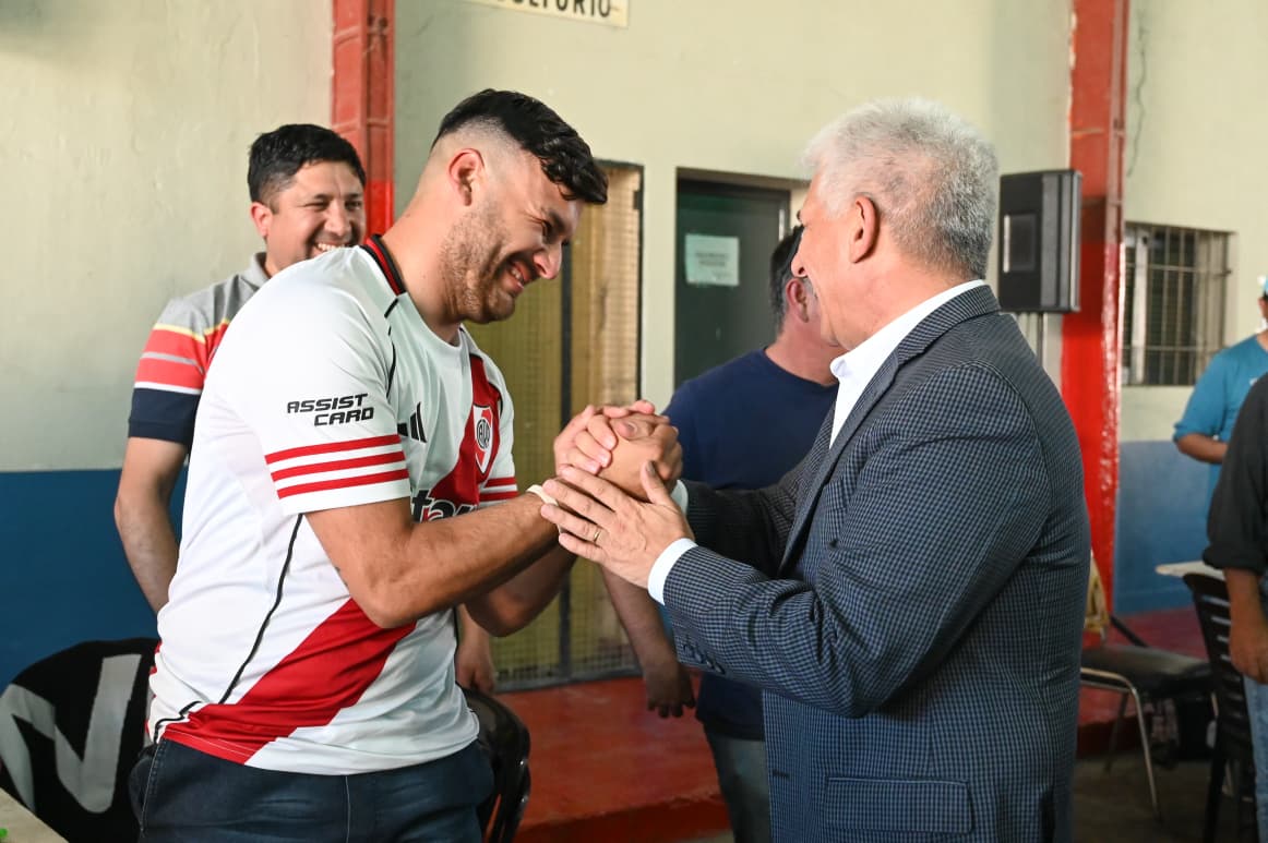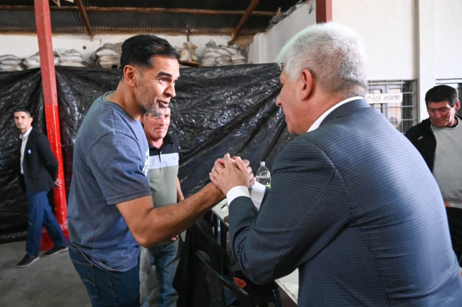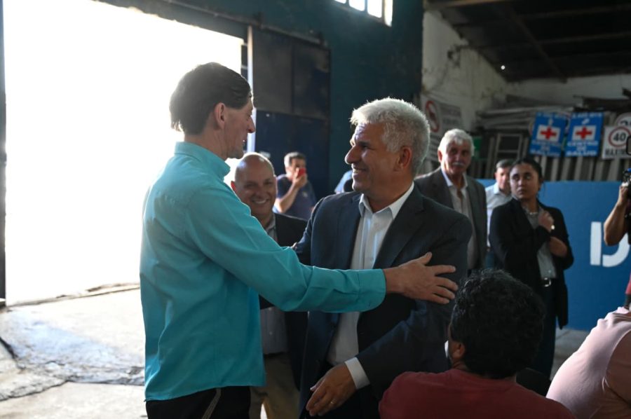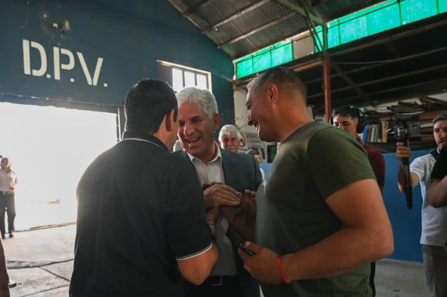 Luego el Gobernador ingresó al galpón y pasó mesa por mesa saludando a los trabajadores, quienes lo recibieron entre abrazos, risas y selfies.