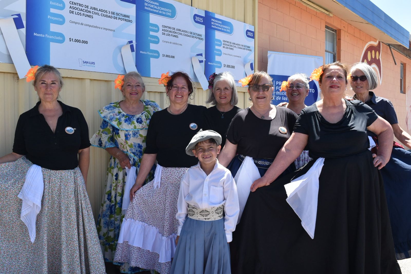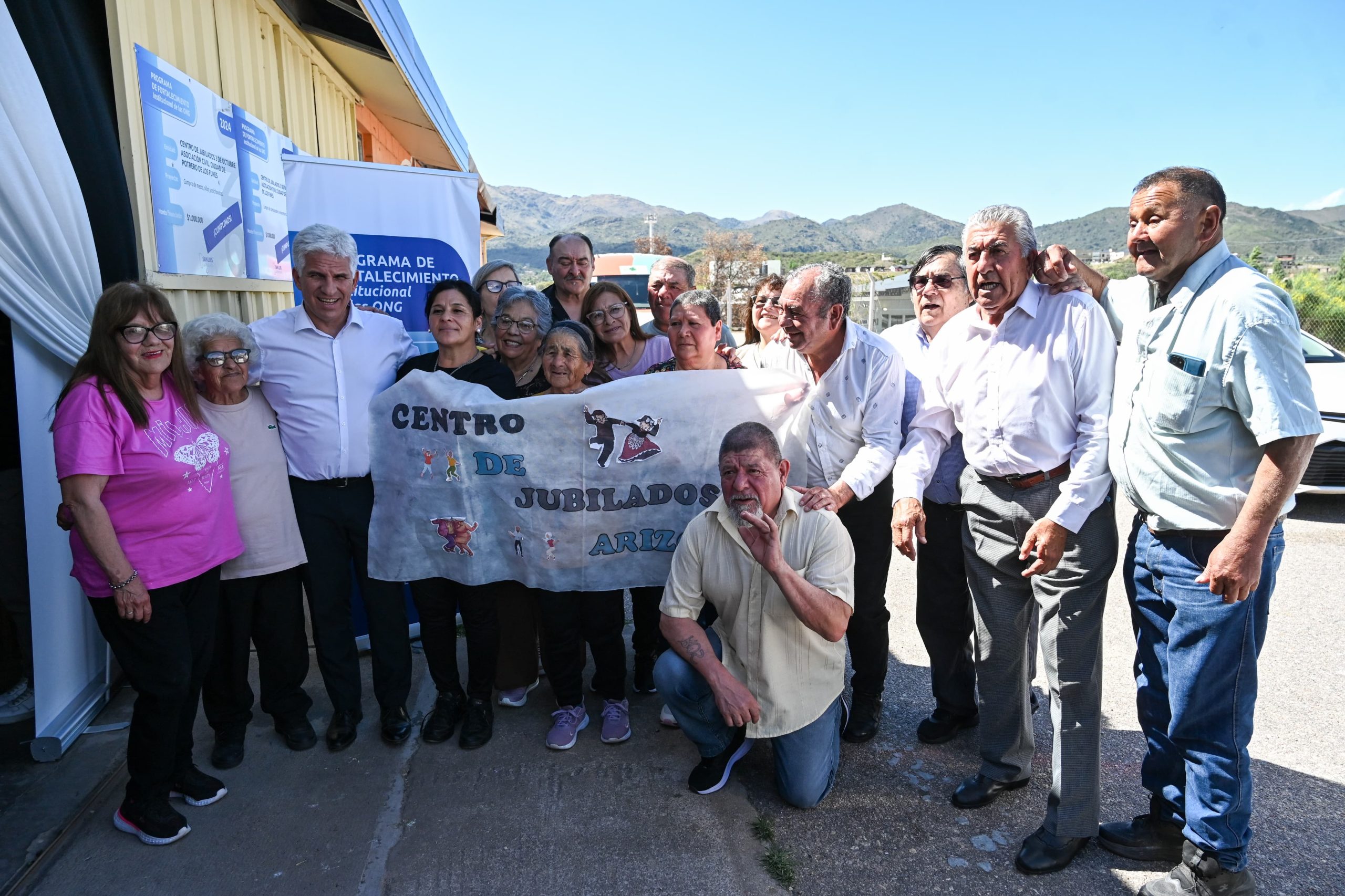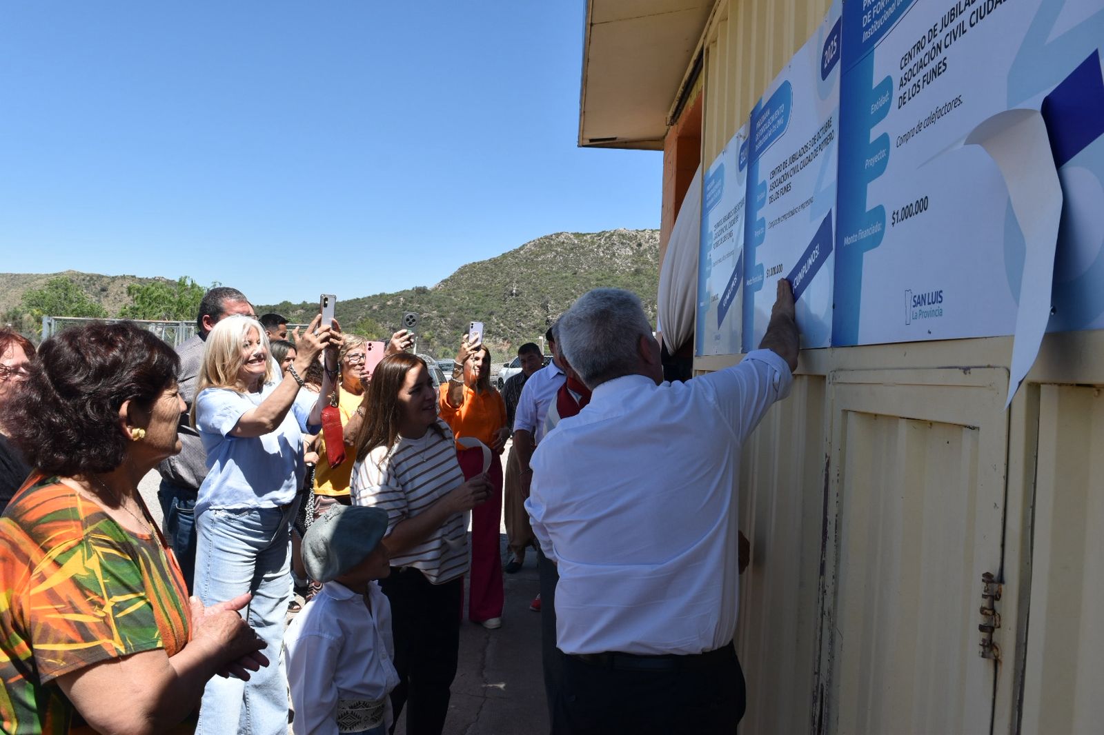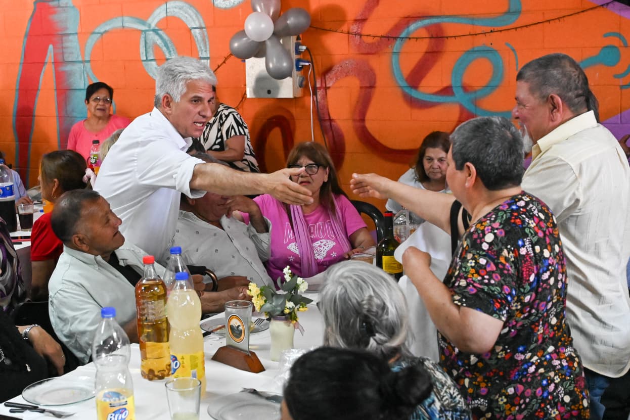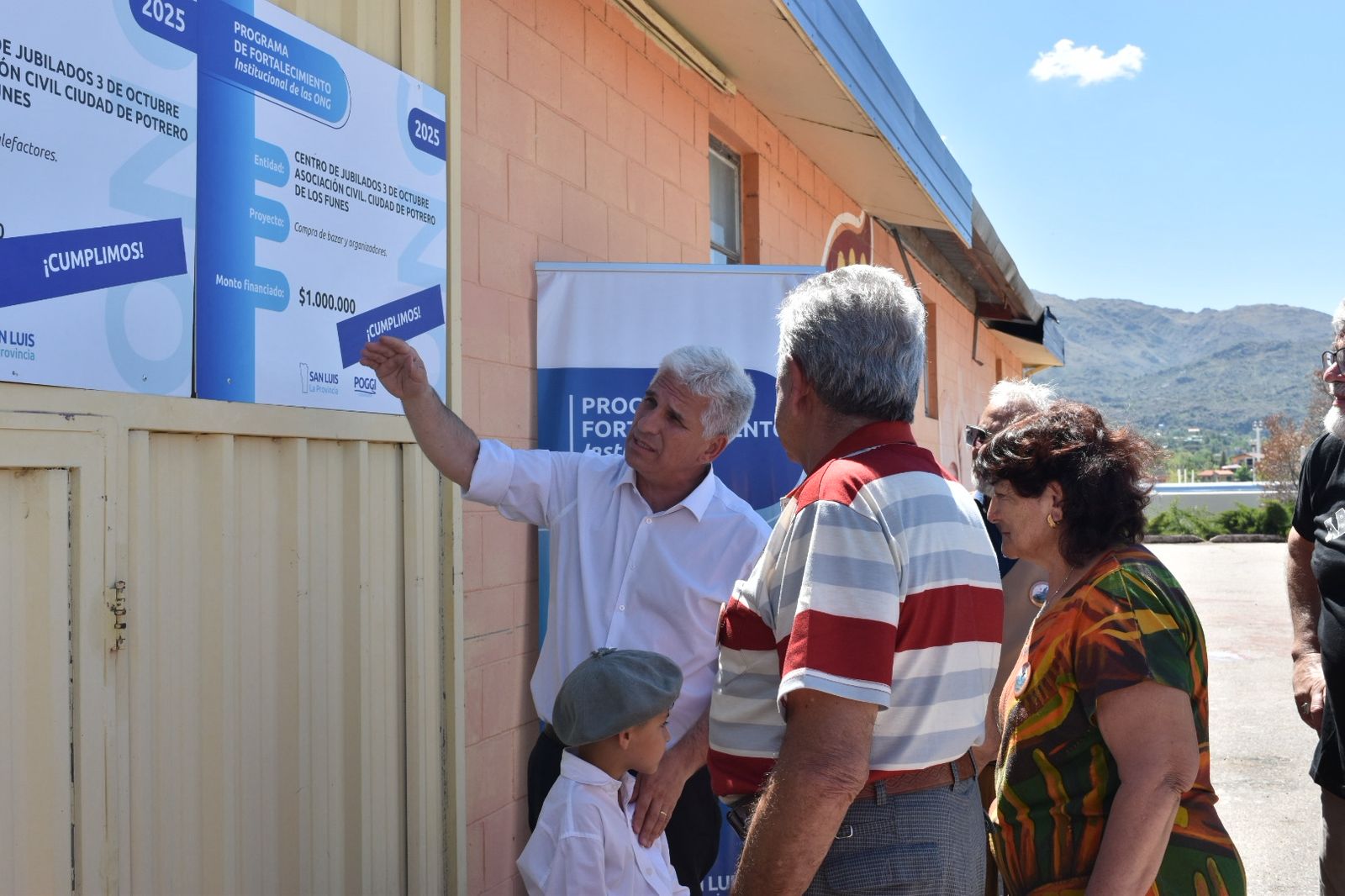 Pasado el mediodía, el gobernador Claudio Poggi se acercó al Centro de Jubilados y Pensionados ‘3 de Octubre’ de Potrero de los Funes para celebrar el primer aniversario de la institución junto a los adultos mayores.