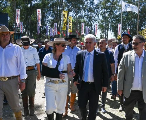 La ceremonia comenzó en la pista central con la entonación de la canción patria Aurora y el Himno Nacional Argentino. Luego ingresaron los campeones y troperos, el padre Eduardo Crivelli dio la bendición y seguidamente fue el turno de la presidenta de la Sociedad Rural, Yeny Yurchag. “Han sido momentos difíciles, pero siempre tratamos de mantener el diálogo”, manifestó la titular, y añadió: “Ver la necesidad que está pasando el sector y tratar de, en conjunto ya sea con el gobierno nacional, provincial o municipal, dialogar y buscar un consenso, es realmente lo que necesitamos”.