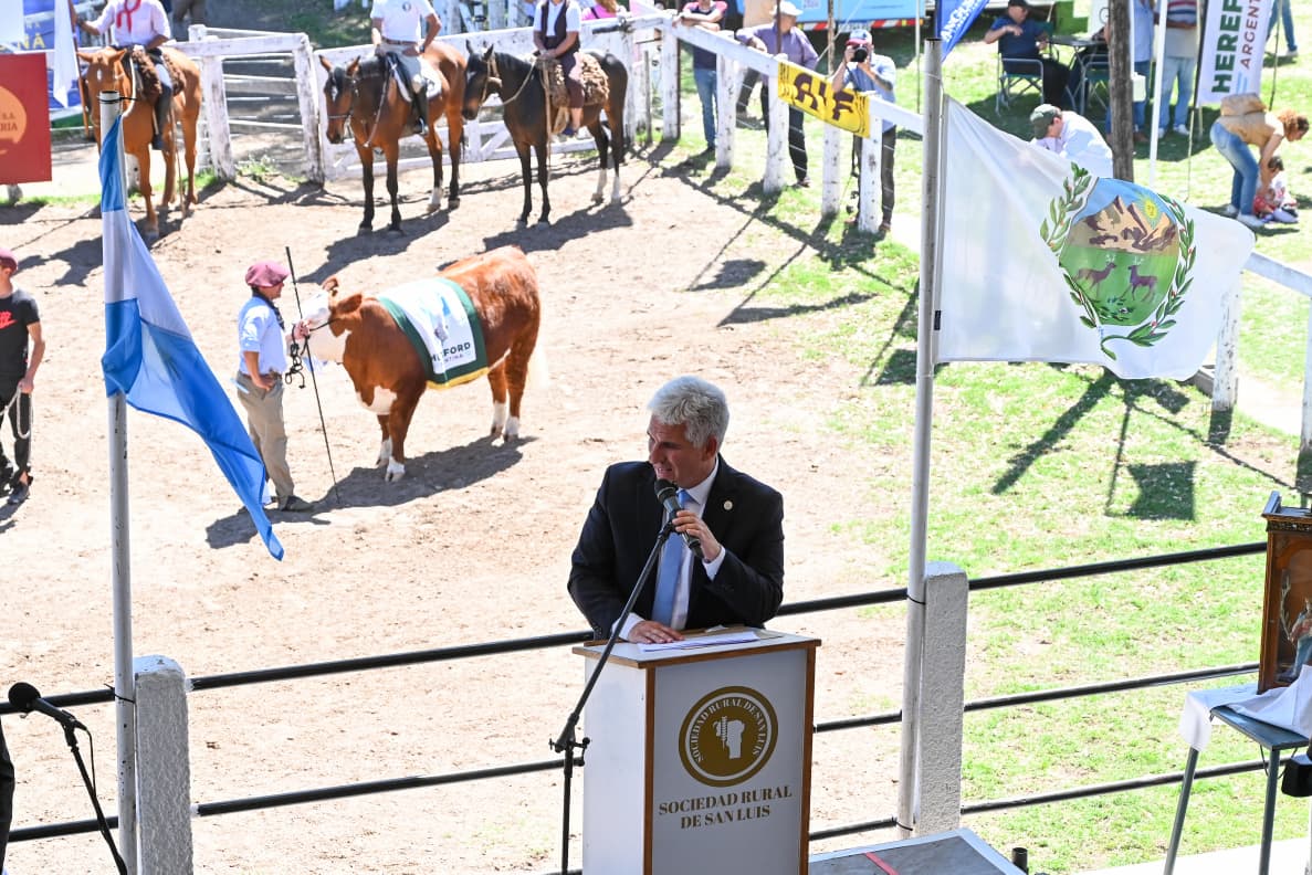 Tras saludar a toda la gran familia que tiene que ver con el campo de San Luis, Poggi afirmó que su presencia en el evento es una muestra del “deseo, como lo venimos haciendo, de articular acciones entre el sector público, la Sociedad Rural y los productores”. “Hoy más que nunca es el momento donde tenemos que trabajar espalda con espalda, codo a codo, sector público, sector productivo, el campo, y todas las demás actividades económicas privadas, para potenciar San Luis”.