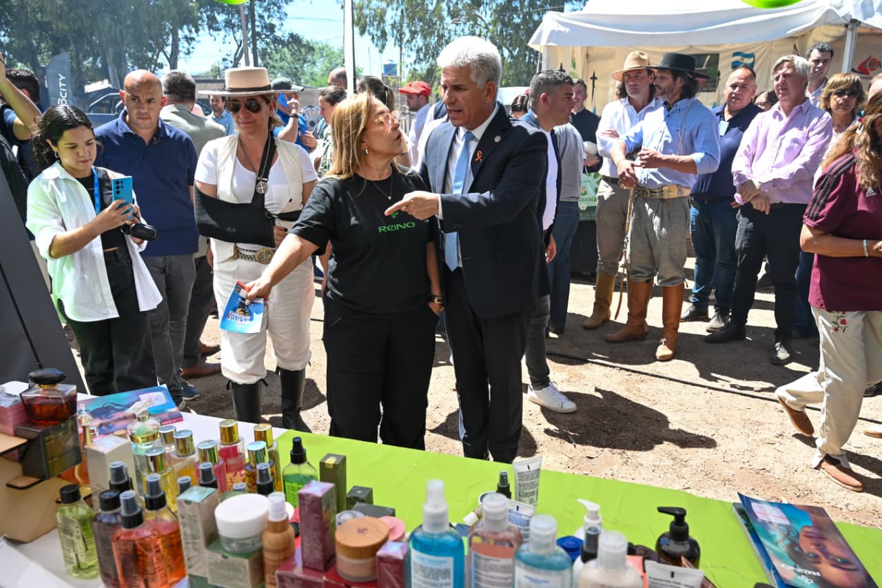 Yeny Yurchag, presidenta del ente rector del campo puntano, recibió al gobernador Poggi que estuvo acompañado por el vicegobernador Ricardo Endeiza, integrantes de su gabinete y el intendente de San Luis, Gastón Hissa. Juntos recorrieron la expo que cuenta con distintos espacios donde el sector muestra lo que tiene para ofrecer. Además, el Ejecutivo, a través de la cartera productiva, instaló diversos stands promocionando los programas y herramientas que se impulsan desde la Provincia para fortalecer la producción local, diversificar la economía y promover la sustentabilidad.