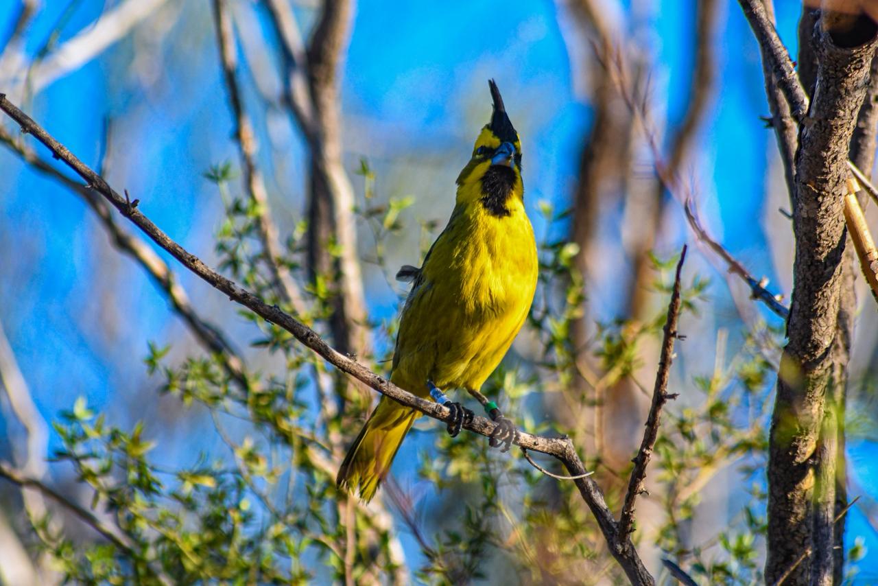 Seis cardenales amarillos volvieron a la silvestría en el joven espacio natural privado colindante al Parque Nacional Sierra de Las Quijadas.