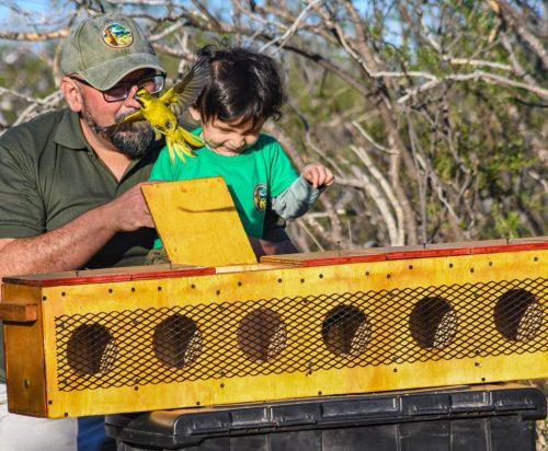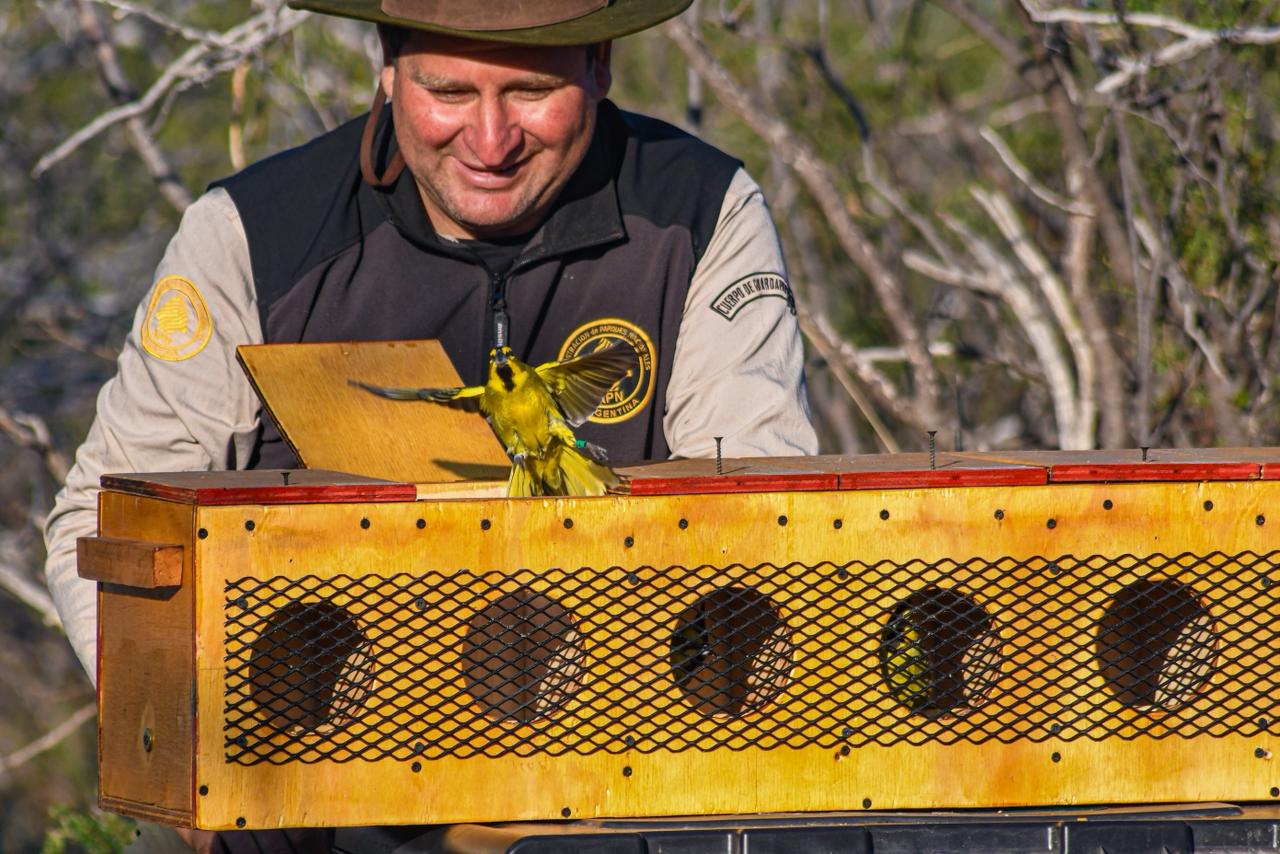 Fundación Temaikén, Aves Argentinas, Agencia de Parques Nacionales y la secretaría de Ambiente y Desarrollo Sustentable se unieron para una nueva liberación de la especie cardenal amarillo (Gubernatrix cristata), que reside en los amplios espacios de la tierra colorada de Sierra de Las Quijadas y el norte provincial. En esta ocasión, y por primera vez, el escenario fue la recientemente creada reserva natural ‘Famiyasta’, colindante al Parque Nacional Sierra de Las Quijadas.
