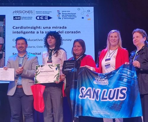 También obtuvo una mención destacada el proyecto ‘CardioInsight: una mirada inteligente a la salud del corazón’, realizado por estudiantes de 6° año del Centro Educativo ‘Causay’ de la ciudad de San Luis. La iniciativa fue reconocida por su carácter interdisciplinario, la creatividad del equipo y el esfuerzo del establecimiento educativo. Los estudiantes integraron contenidos de Estadística, Matemática, Tecnología, Biología y Lengua para desarrollar un modelo capaz de detectar cardiomegalias mediante inteligencia artificial discriminativa. Además, el proyecto recibió una mención adicional por parte de la provincia anfitriona, Misiones.
