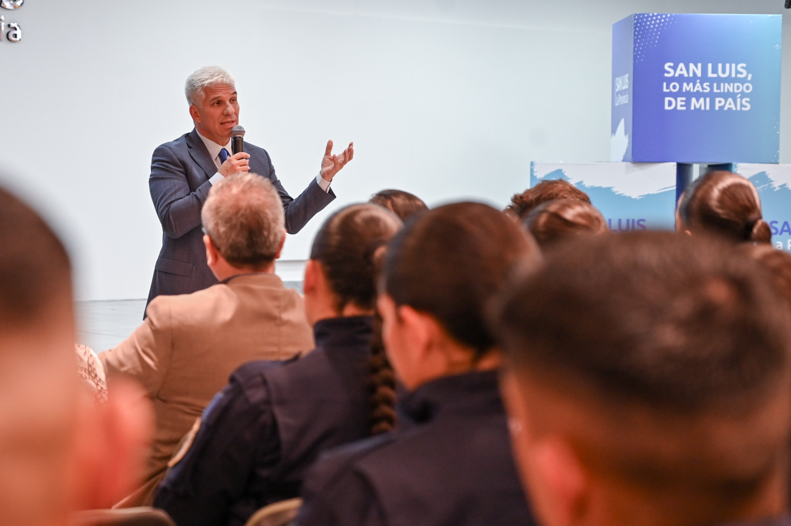 Además de agradecer por su labor, les reiteró su apoyo a los integrantes de la fuerza, a los que instó a trabajar siempre dentro del marco de la ley y de la Constitución, en defensa de la vida y bienes de los sanluiseños. “Hay un vínculo directo entre la seguridad y la oportunidad generar trabajo, que es para nuestros nietos, nuestros hermanos de San Luis. De allí la importancia ir dando pasos en la política de seguridad”, expresó.
