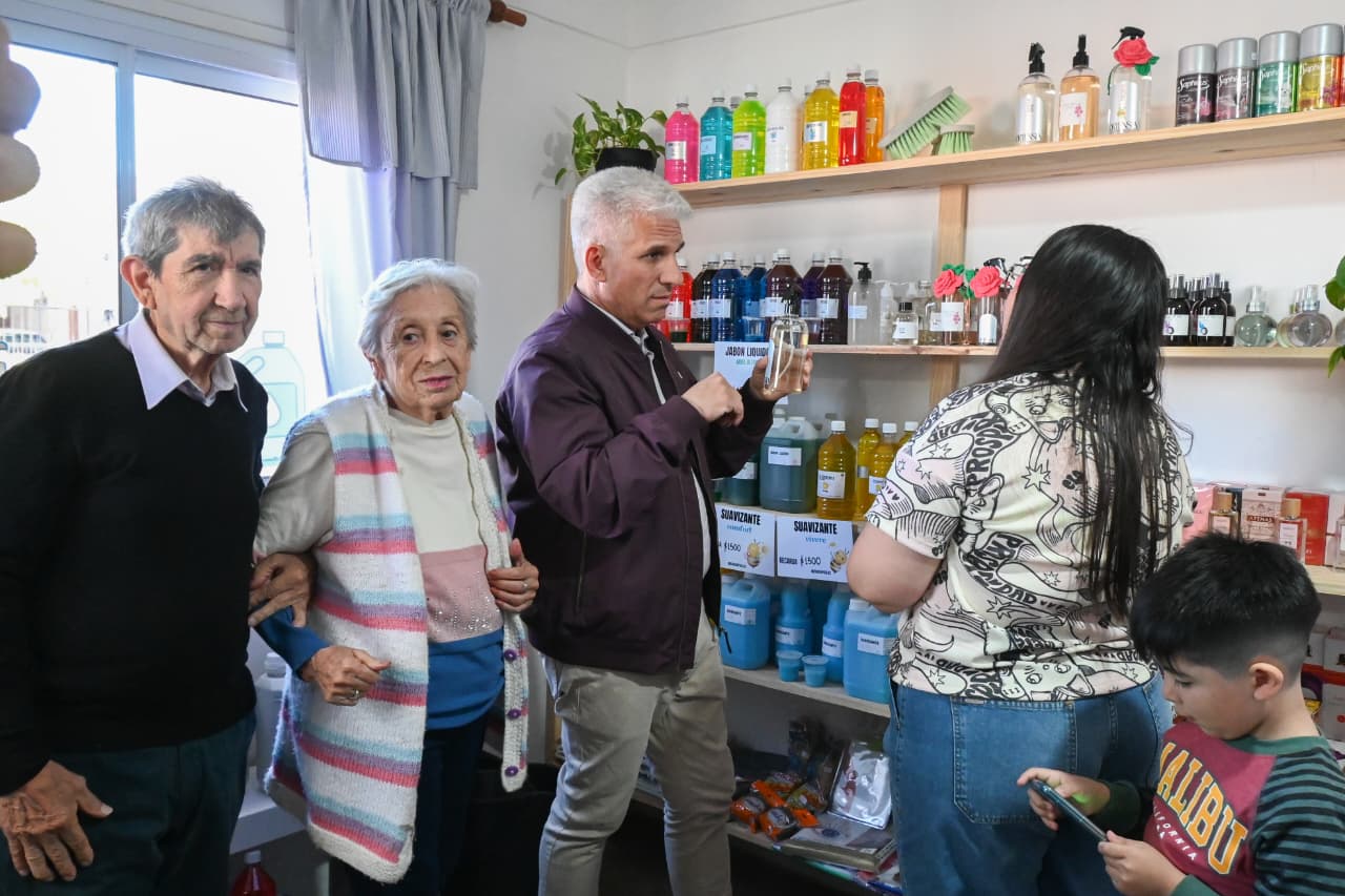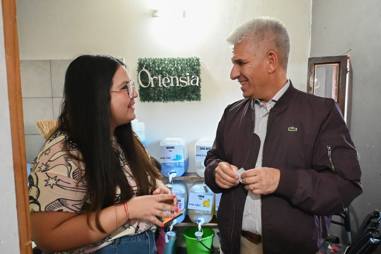 Recibido por su dueña, Daiana Báez, el gobernador Claudio Poggi visitó el comercio donde lograron montar un mini laboratorio para producir todo tipo aromas y fraccionar artículos de limpieza.