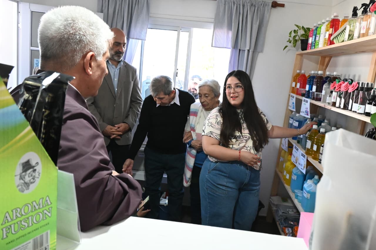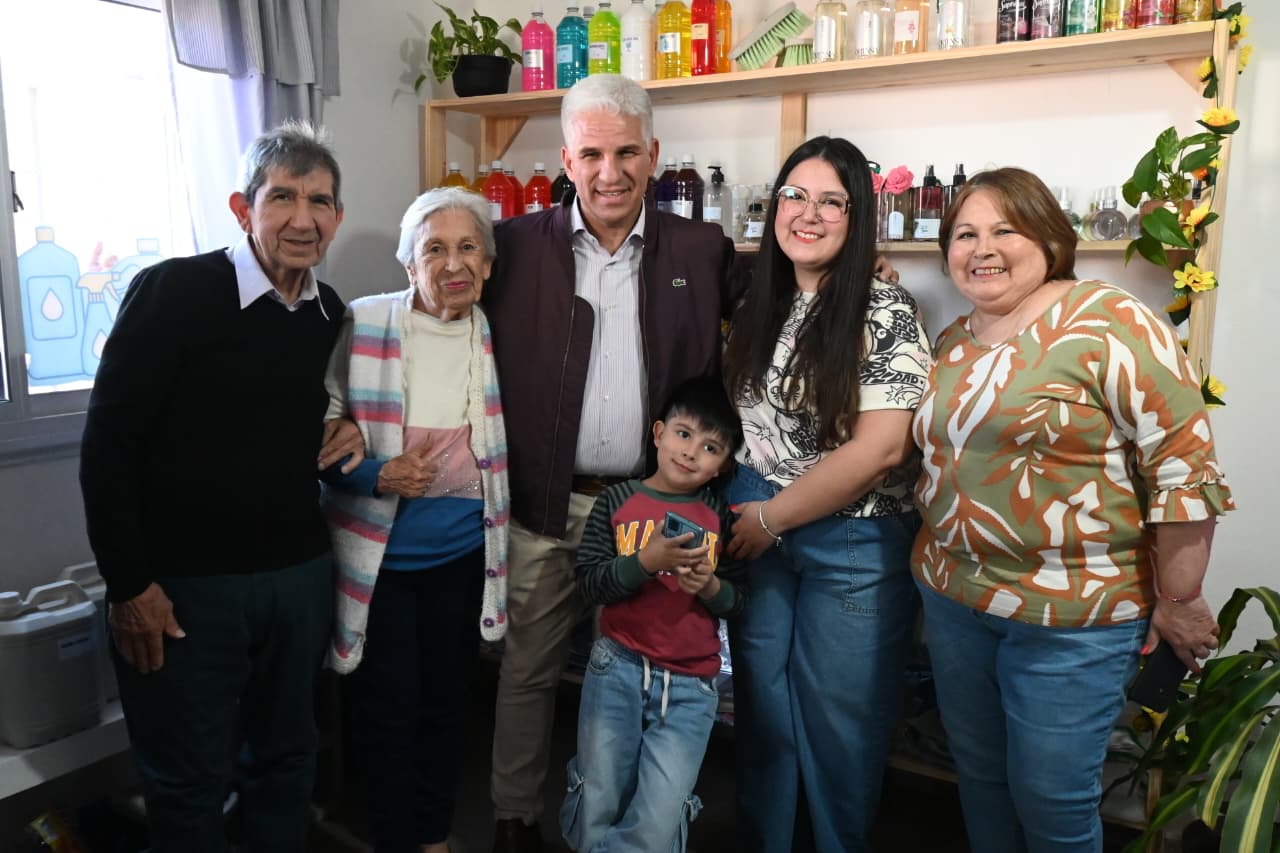 Recibido por su dueña, Daiana Báez, el gobernador Claudio Poggi visitó el comercio donde lograron montar un mini laboratorio para producir todo tipo aromas y fraccionar artículos de limpieza.
