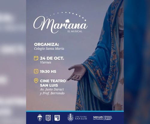 Toda la comunidad educativa del Colegio Santa María vive con gran expectativa la antesala del estreno de la obra ‘Mariana el musical’, el viernes 24 de octubre. Y es que el proyecto conjuga varias singularidades: es la primera producción de ese tipo y género creada completamente en San Luis por los integrantes de un colegio, con un gran despliegue que incluye 240 artistas en escena, escenografía y vestuarios originales y la incorporación de la IA, para contar la vida de la Virgen María, desde su nacimiento a la ascensión al cielo.