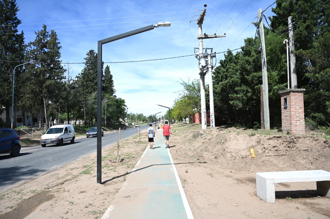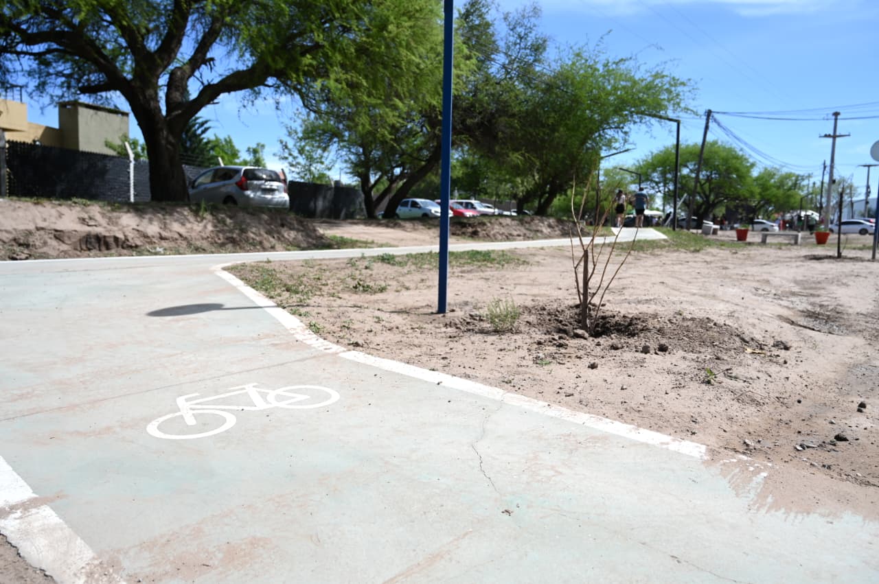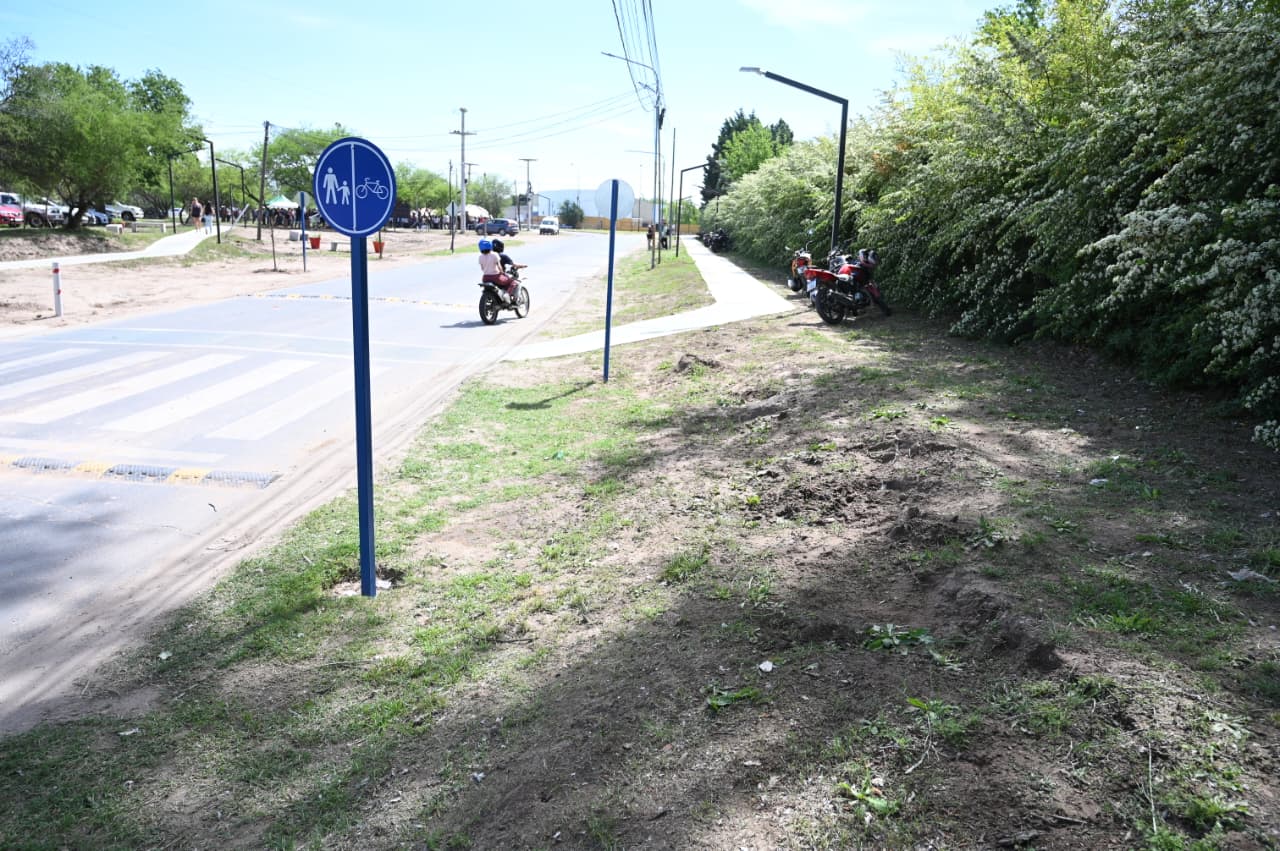 El gobernador Claudio Poggi y el intendente Maximiliano Frontera encabezaron el acto inaugural de la obra que se realizó a través del convenio de ‘Construyendo con tu Pueblo’. El proyecto contempla la construcción de una bicisenda, la implementación de luminarias led, rampas de acceso y estaciones saludables.
