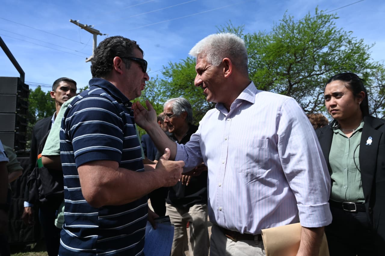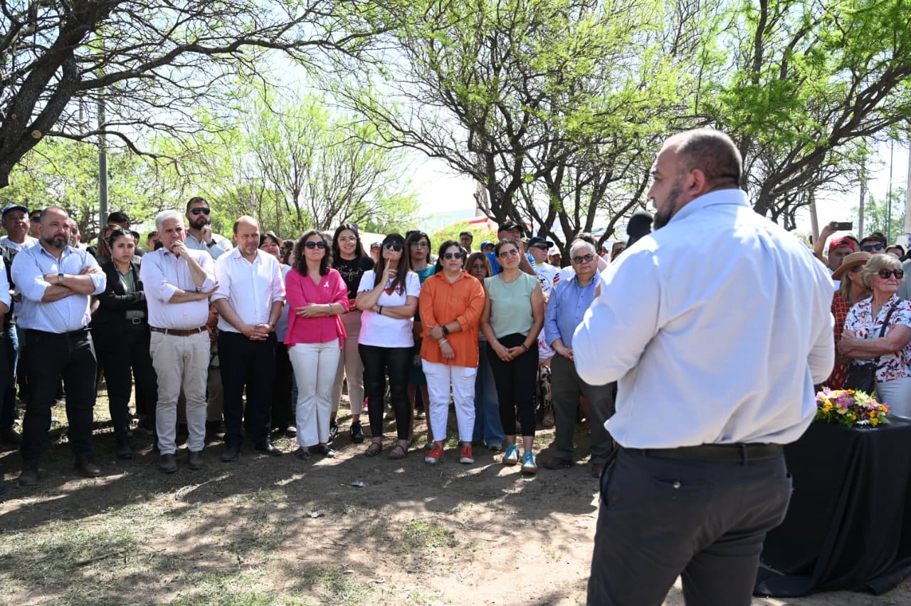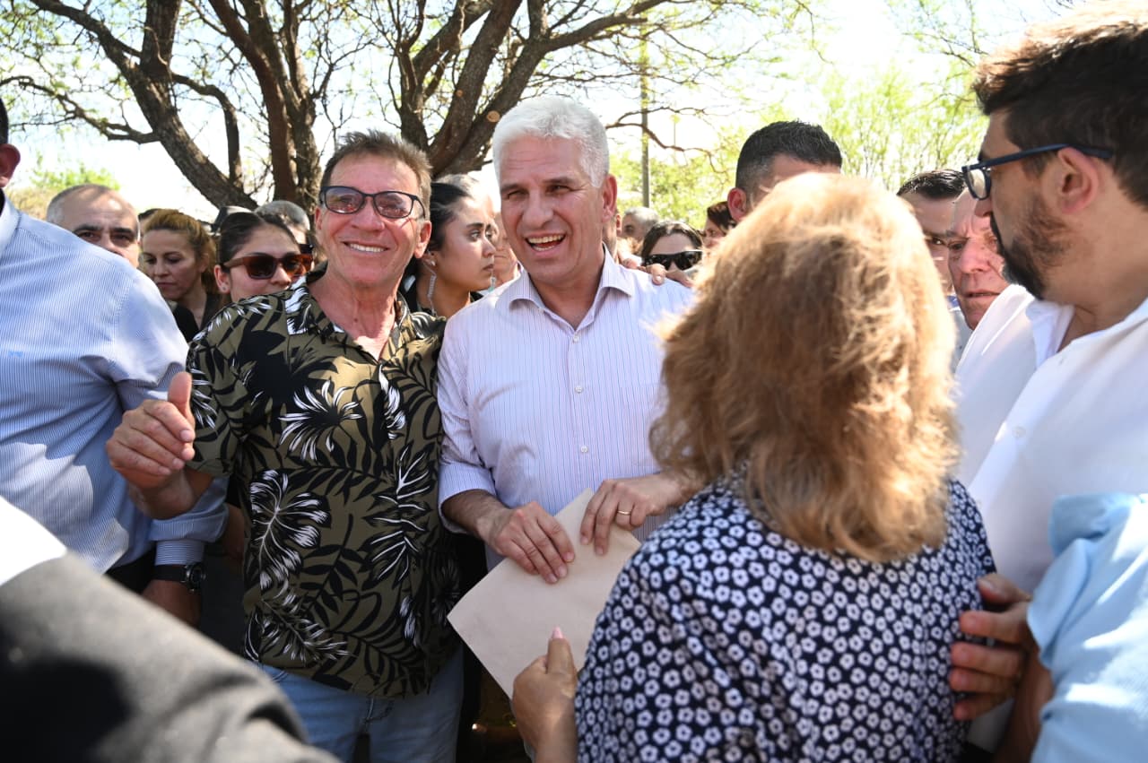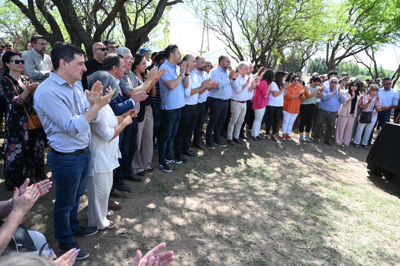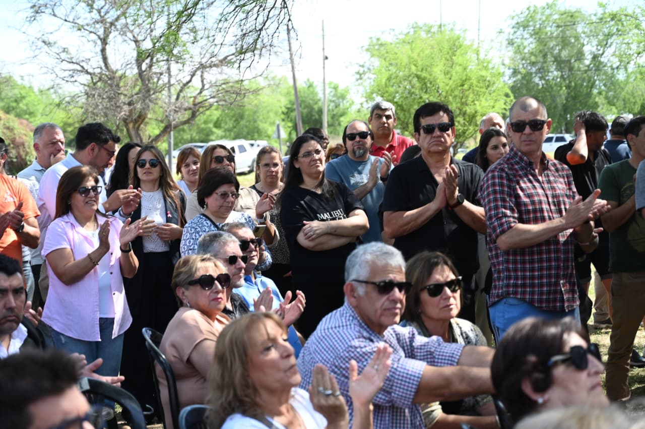 Fuera de protocolo, tanto las autoridades como los vecinos aprovecharon la ocasión para saludar al gobernador Claudio Poggi por su reciente cumpleaños, entregándole un obsequio de una tienda local y compartiendo luego una torta con todos, en un gesto de cercanía y calidez que cerró la jornada con aplausos y emoción.