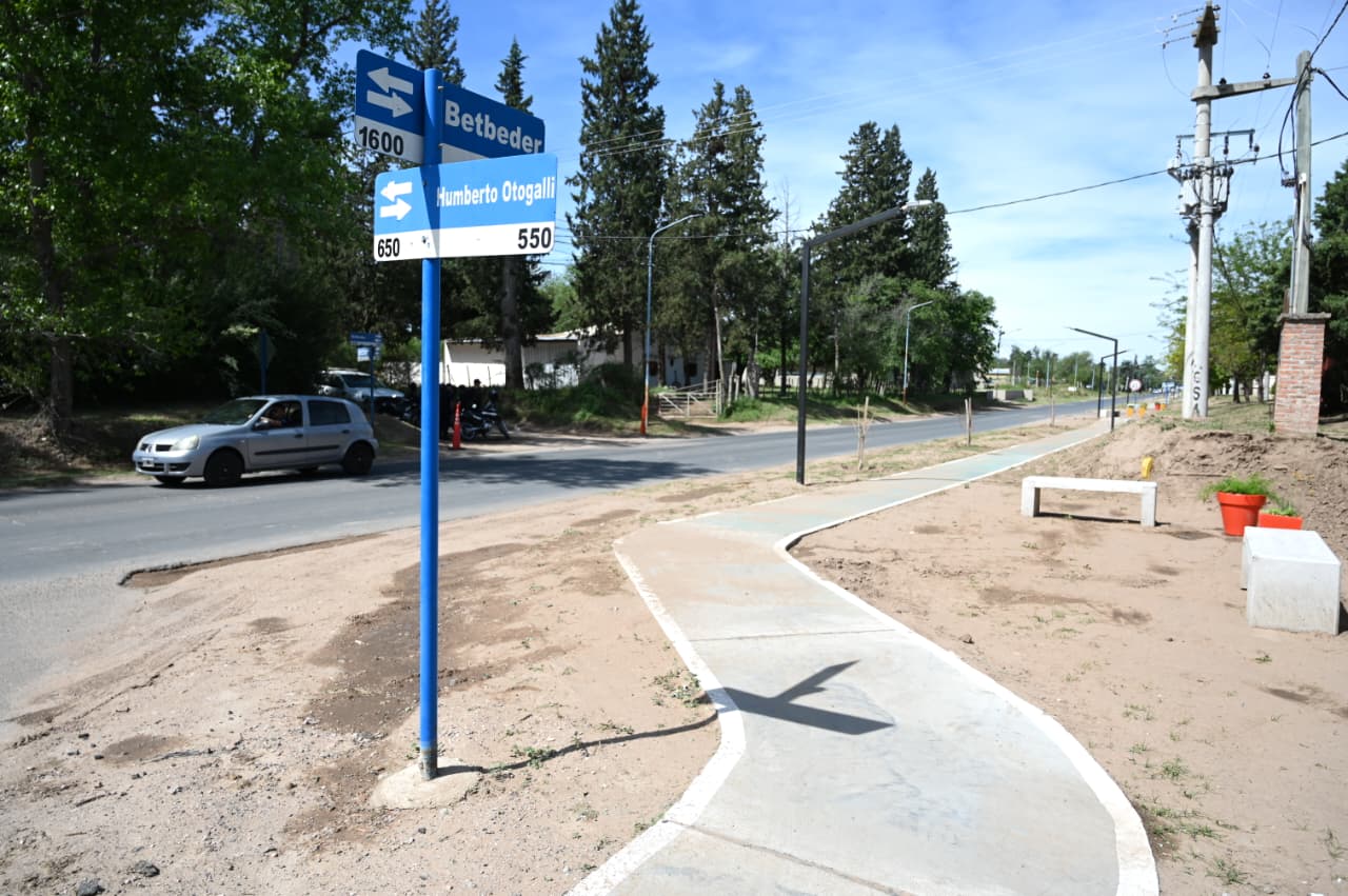 El gobernador Claudio Poggi y el intendente Maximiliano Frontera encabezaron el acto inaugural de la obra que se realizó a través del convenio de ‘Construyendo con tu Pueblo’. El proyecto contempla la construcción de una bicisenda, la implementación de luminarias led, rampas de acceso y estaciones saludables.