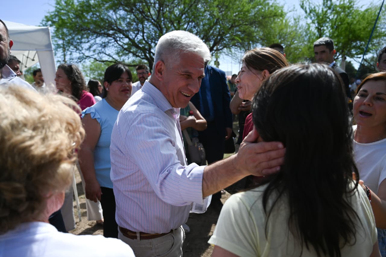 Fuera de protocolo, tanto las autoridades como los vecinos aprovecharon la ocasión para saludar al gobernador Claudio Poggi por su reciente cumpleaños, entregándole un obsequio de una tienda local y compartiendo luego una torta con todos, en un gesto de cercanía y calidez que cerró la jornada con aplausos y emoción.