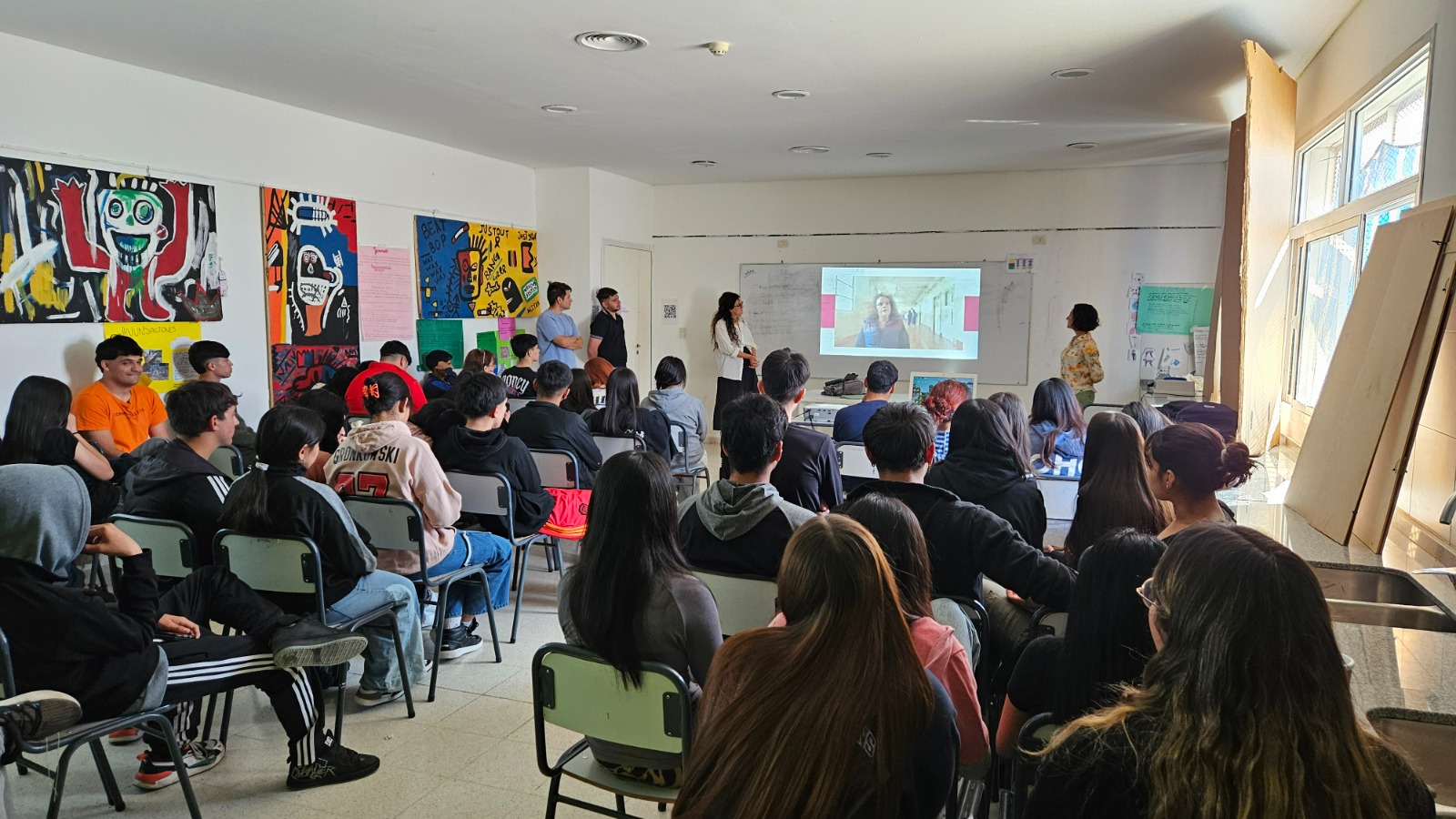 En el salón de usos múltiples principal tuvo lugar otro de los encuentros, que estuvo a cargo del equipo de redes sociales de San Luis+ y abordó aspectos como los fundamentos de la escritura audiovisual. Trabajaron desde la concepción de la idea hasta el cierre de la estructura narrativa, enfatizando sobre el guion como la columna vertebral de cualquier producción audiovisual (video, spot, reel o podcast). También hicieron hincapié en el guionista como arquitecto que decide qué contar, cómo decirlo y con qué ritmo emocional, además de la estructura del guion (inicio, desarrollo y cierre) y cómo los estudiantes pueden utilizarlo para elevar la calidad de sus producciones escolares, fortalecer el trabajo colaborativo y contar historias con impacto local.
