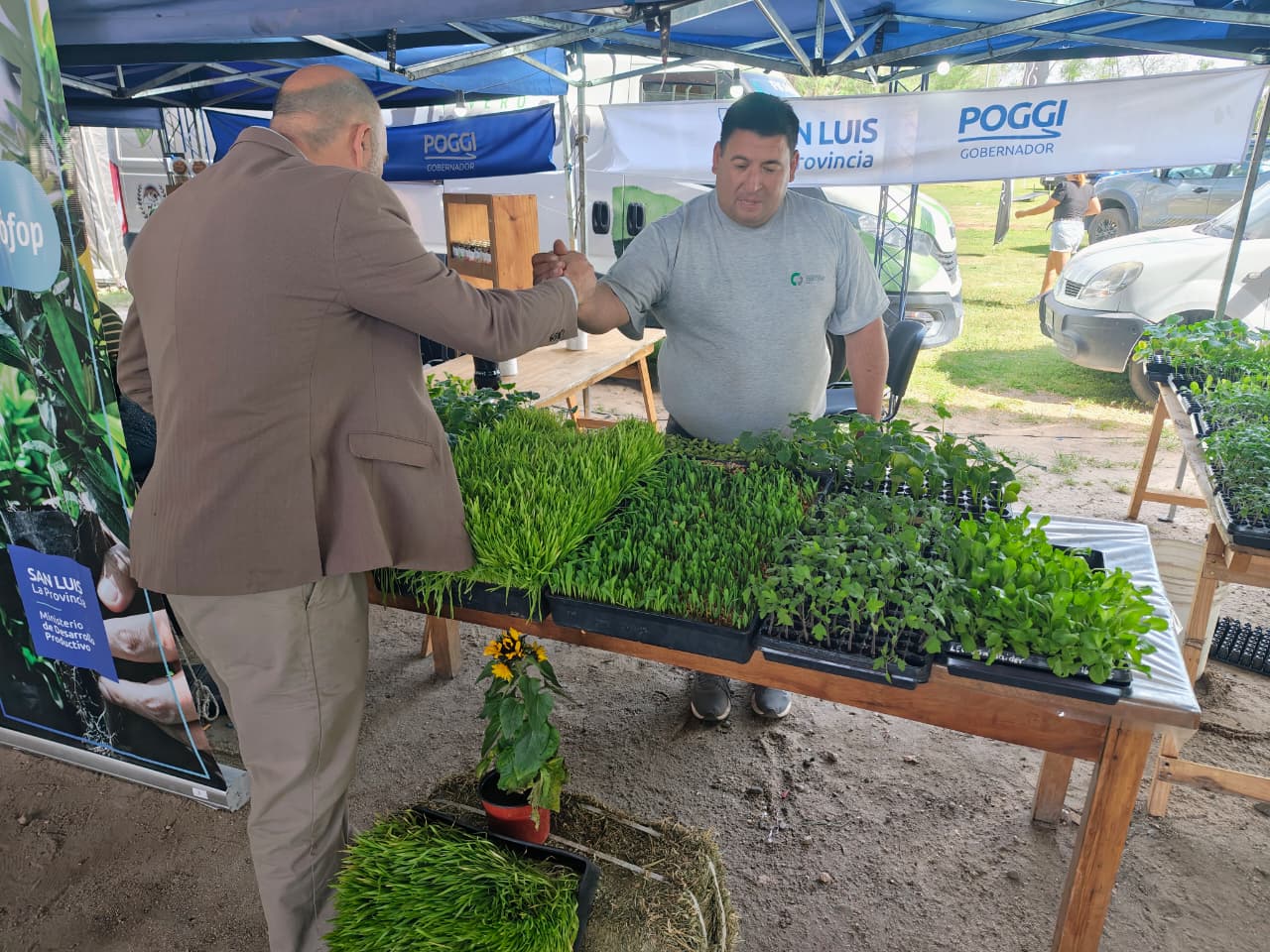 El stand del ministerio de Desarrollo Productivo incluyó el programa Mosca de los Frutos; el Vivero Improfop con venta y capacitación en forraje verde hidropónico; Sol Puntano y su vasta oferta de servicios para el sector productivo; información sobre créditos CFI y líneas de financiamiento; talleres de Activá tu Huerta con entrega gratuita de semillas y la Expo Emprendedores, con proyectos de la economía social.