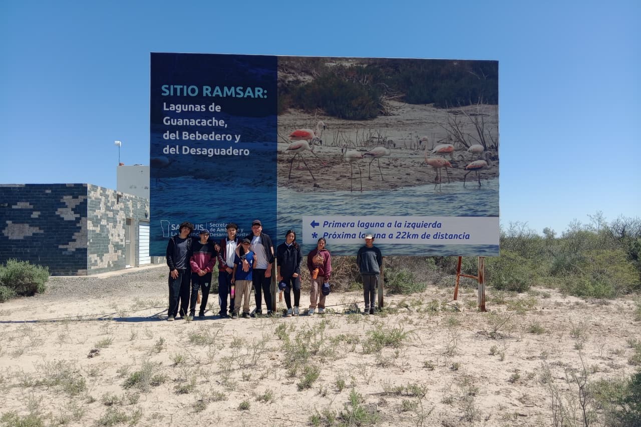 Alumnos de la Escuela N°4-182 ‘Aida Font’ de Desaguadero (La Paz, Mendoza) y estudiantes de la Escuela Generativa de Desaguadero desarrollan una tarea interprovincial en conjunto con los cuidadores y guardaparques del Sitio Ramsar que atraviesa las provincias de San Juan, Mendoza y San Luis para frenar la desertificación, siendo un ejemplo de colaboración y una semilla de esperanza frente a la sequía.