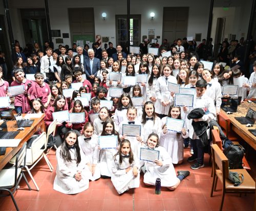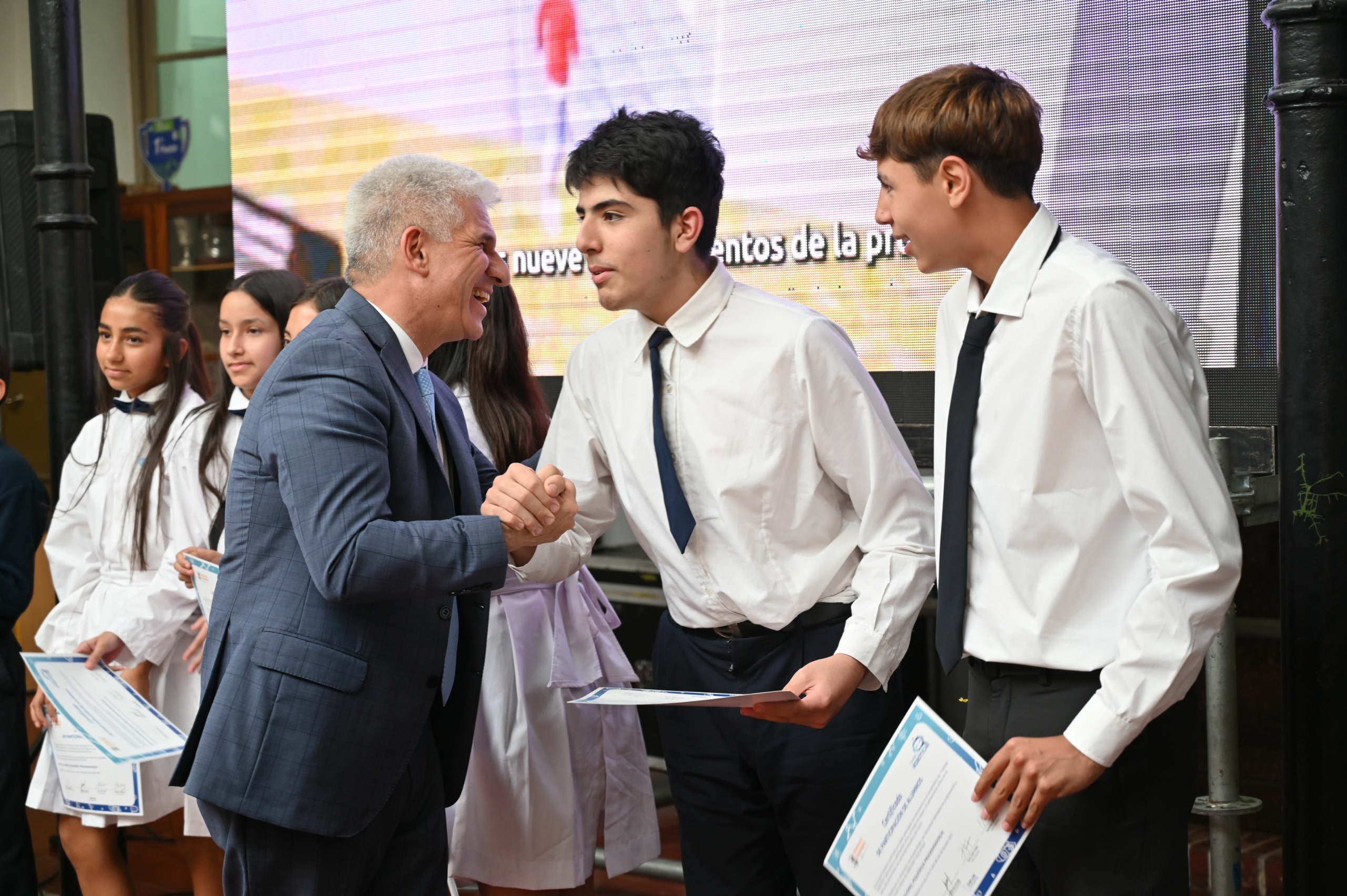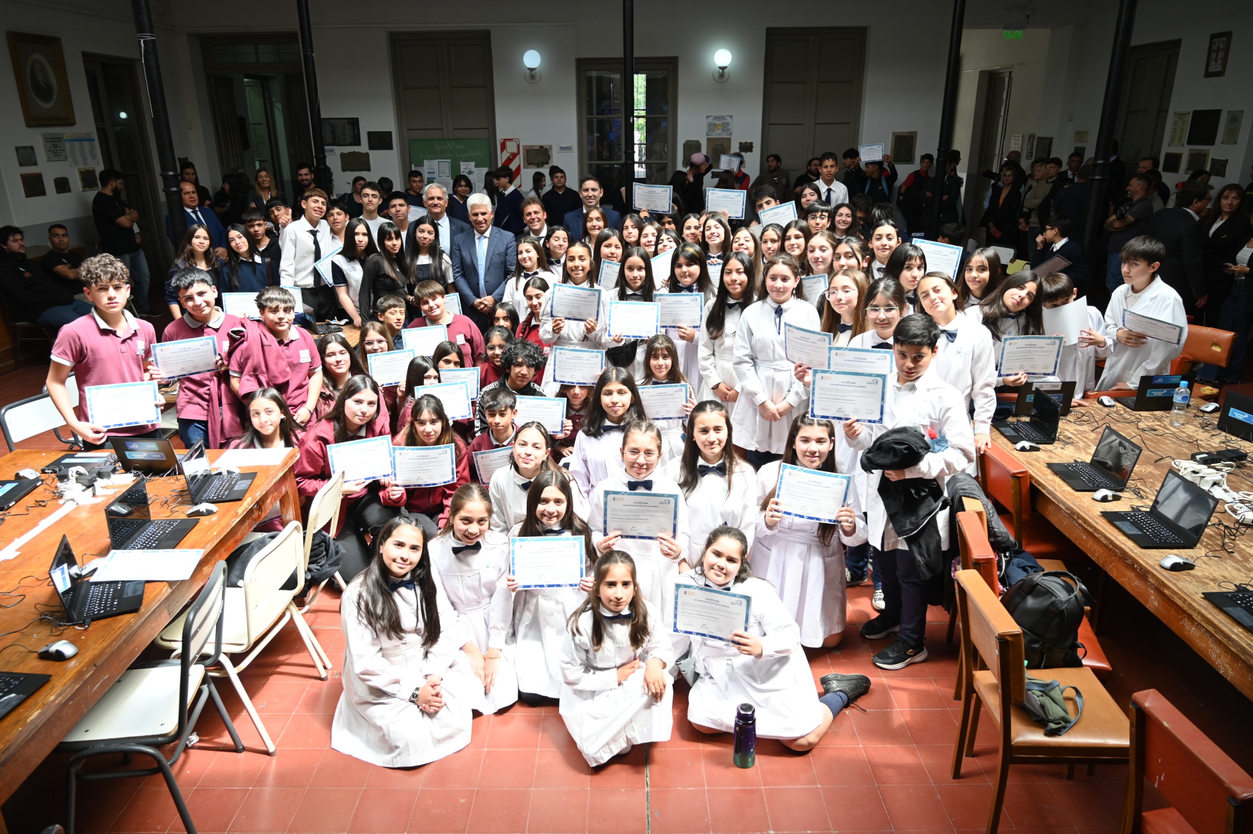 El gobernador Claudio Poggi fue el encargado de encabezar el acto final, donde además de interiorizarse en lo que aprendieron los chicos, también tuvo la oportunidad de saludarlos y felicitarlos luego de la entrega de certificados.