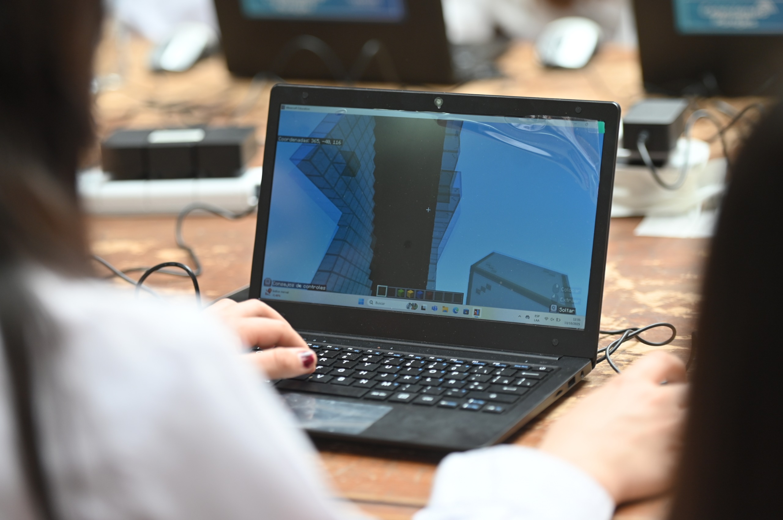 “Minecraft Education en realidad es un programa que los ayuda a ustedes, no solamente a construir ciudades, sino a jugar y de esa manera tal vez estemos despertando alguna vocación. El programa utiliza dos lenguajes que son fundamentales para los programadores que es el Python y el JavaScript, ellos son los que usan todos los informáticos y todos los ingenieros en informática para programar. Ustedes fueron armando las líneas de programación y de esta manera fueron armando sus ciudades. De manera oculta estuvieron aprendiendo un lenguaje que les va a servir mucho más que aprender cualquier otro idioma para los que se dediquen a la informática”, dijo el funcionario.