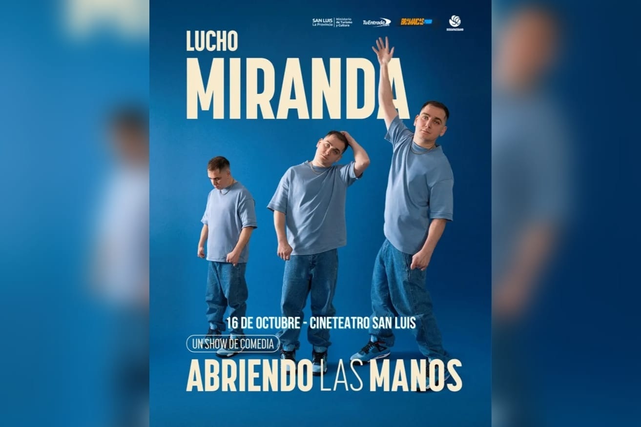 Este jueves, el popular comediante Lucho Miranda brindará un espectáculo en la Capital sanluiseña, bajo el nombre ‘Abriendo las manos’. La función está prevista para las 21:00 en el Cine Teatro San Luis. Las entradas se pueden adquirir en boletería o de manera virtual.