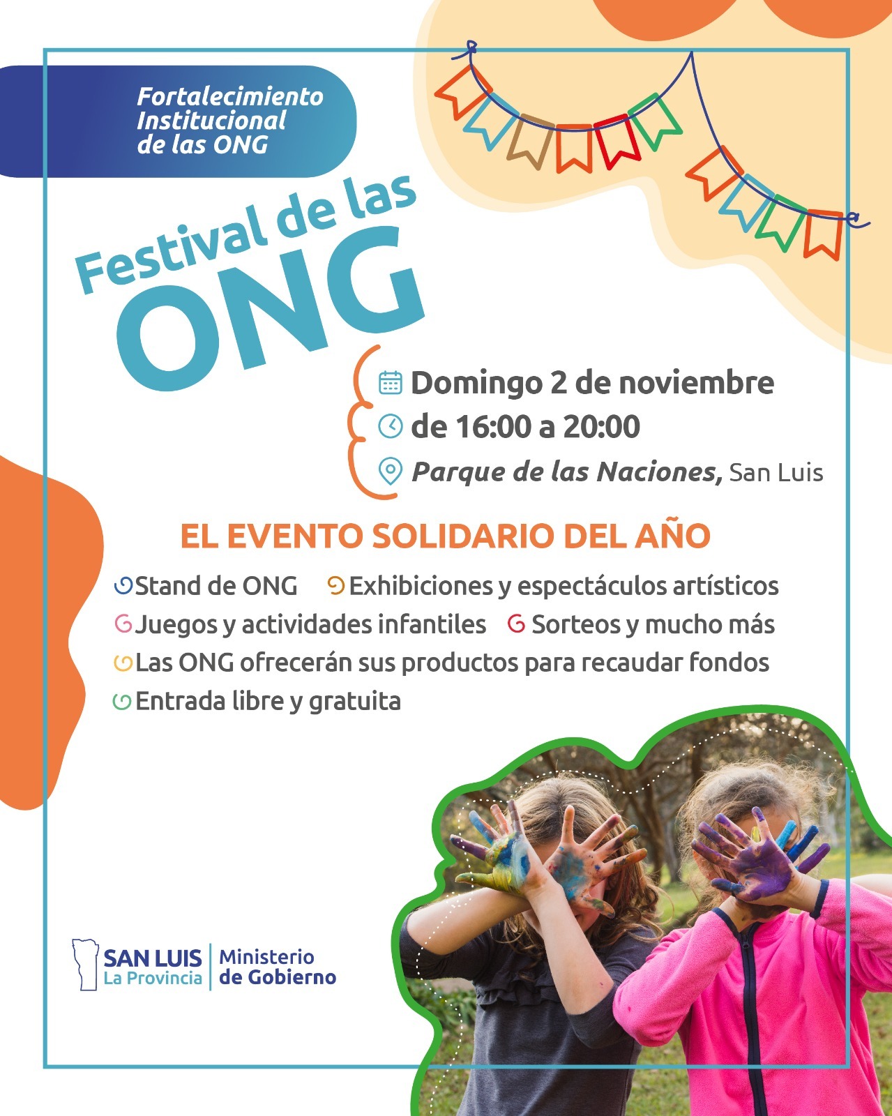 La actividad, que es con entrada libre y gratuita, se desarrollará de 16:00 a 20:00. La funcionaria invitó a las instituciones interesadas en participar a inscribirse para tener su stand. “Este martes, desde el programa, se ha enviado un mail a todas las ONG de la provincia para ser parte del festival, junto con el link de inscripción, que está en en la página oficial del Gobierno de San Luis”, dijo.