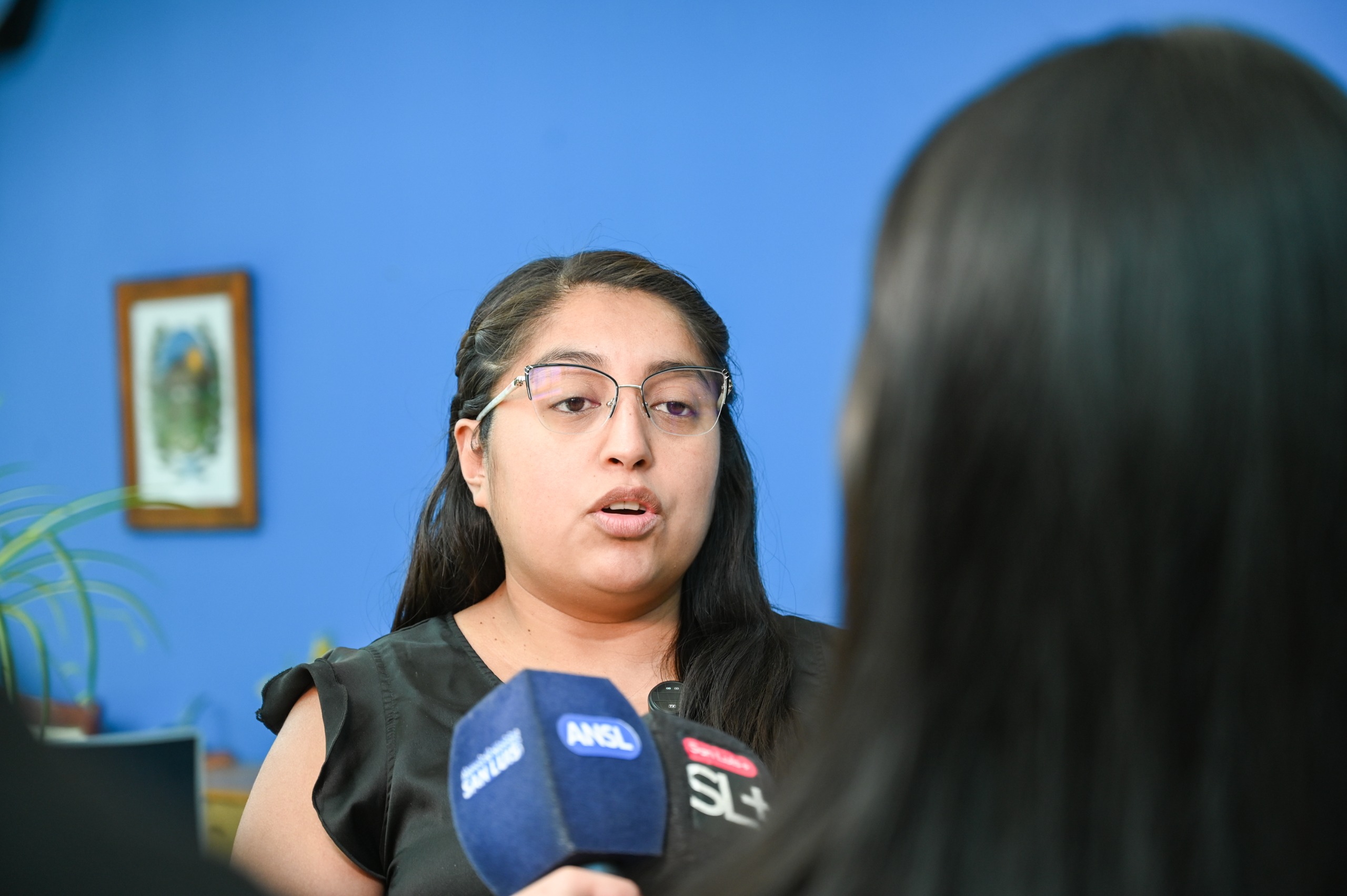 Marianela Quevedo es estudiante de la Licenciatura en Administración y aprovechó la oportunidad brindada por el Gobierno provincial y el CFI para sumarse a la Escuela Federal de Desarrollo. A la salida del conversatorio que compartieron los futuros profesionales con el gobernador Claudio Poggi y con Ignacio Lamothe, secretario general del organismo federal, aseguró que “fue una charla linda, nos presentamos, compartimos conocimientos y contamos cómo nos está yendo”.