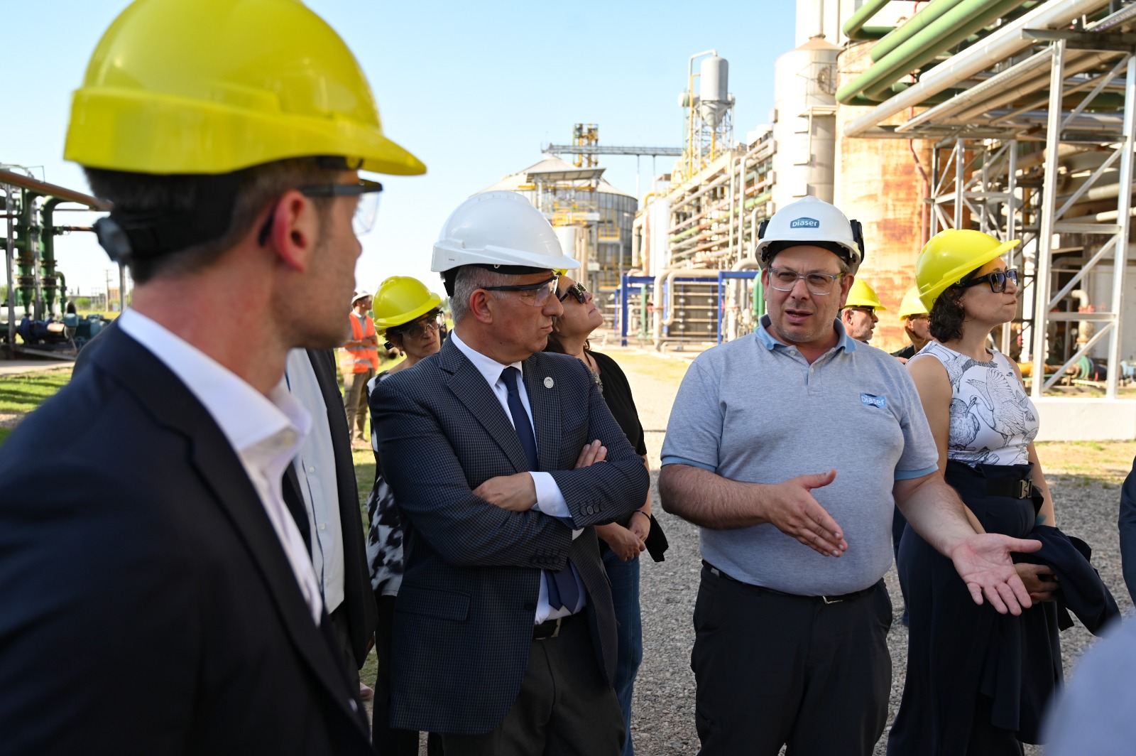 Durante la visita, el Gobernador y las autoridades nacionales fueron recibidos por el propietario Federico Szuchet y el gerente Walter Minetto, quienes guiaron la recorrida por los sectores de molienda selectiva, sala de control, planta de extracción de aceite técnico de maíz, planta de secado de burlanda y la moderna planta de biogás, donde se concentran los motogeneradores.