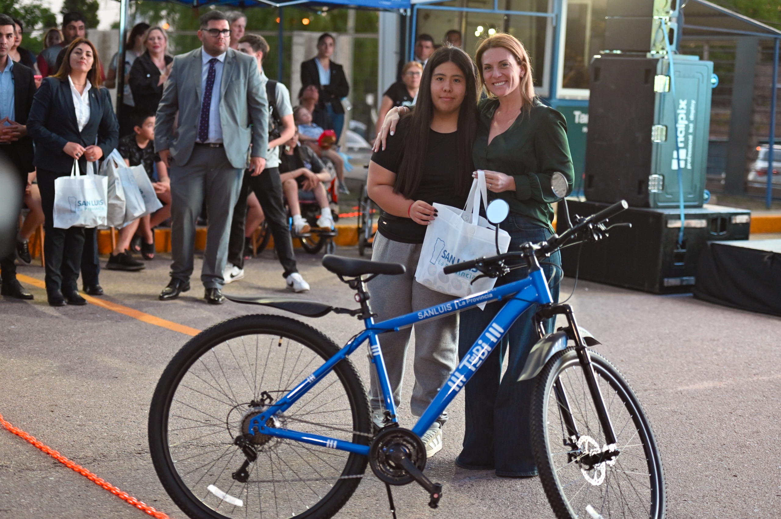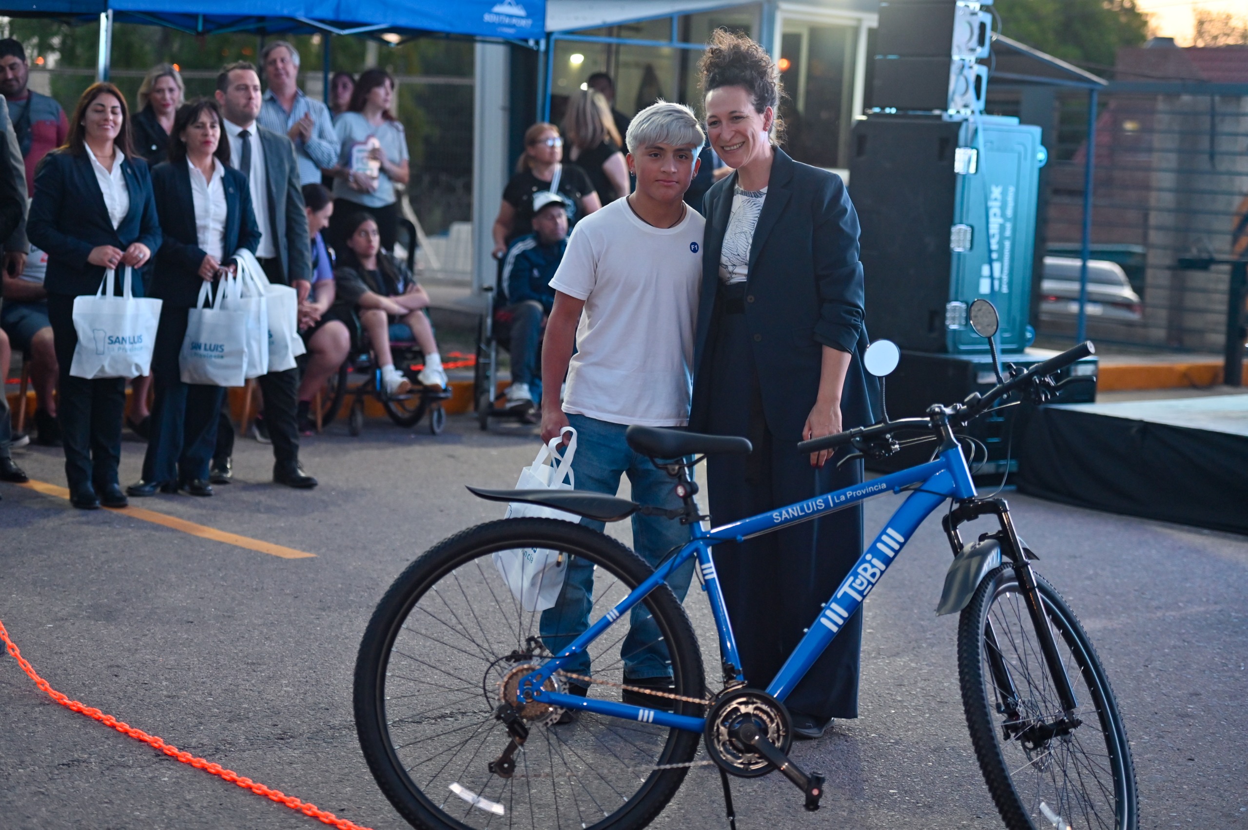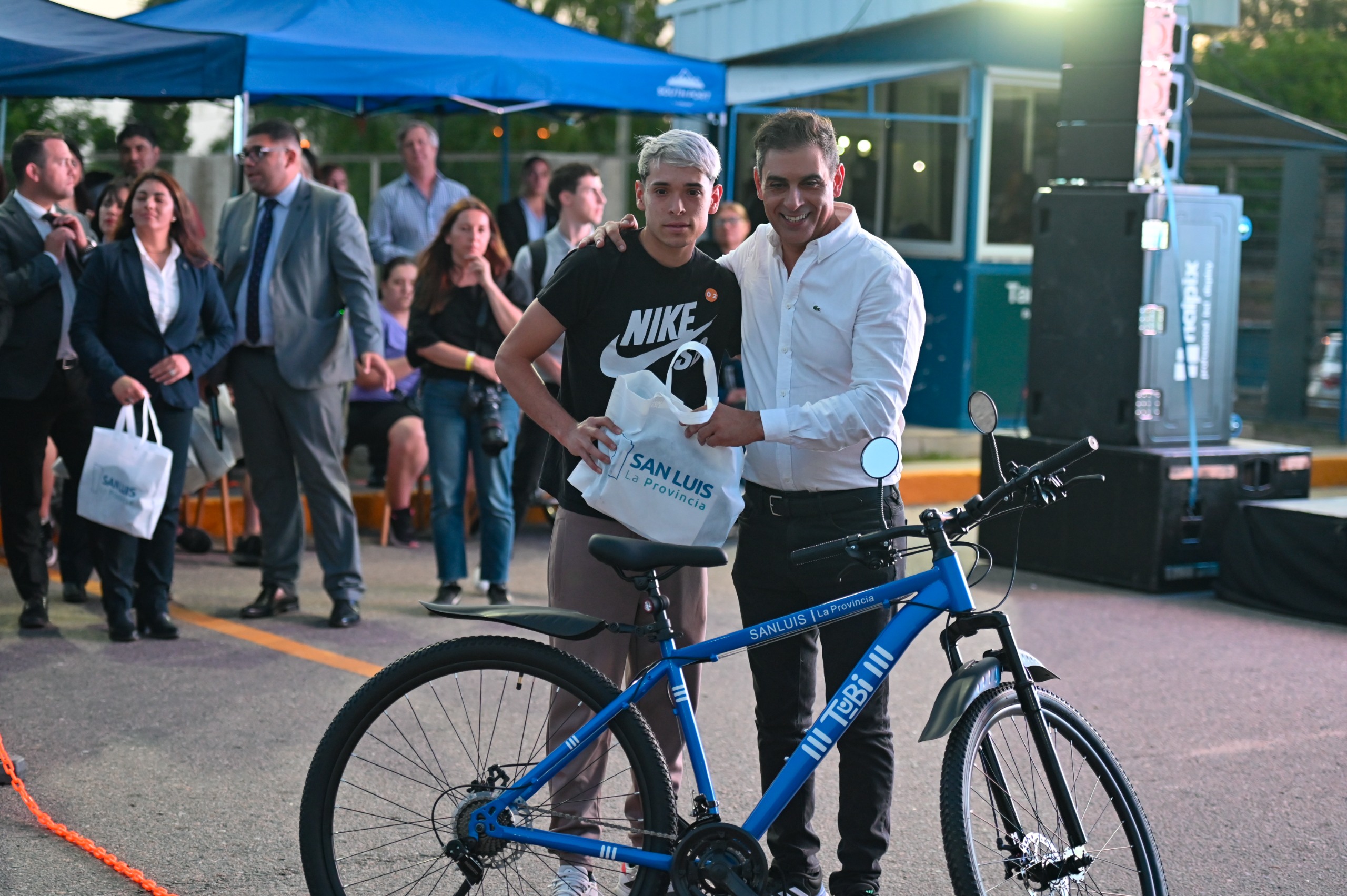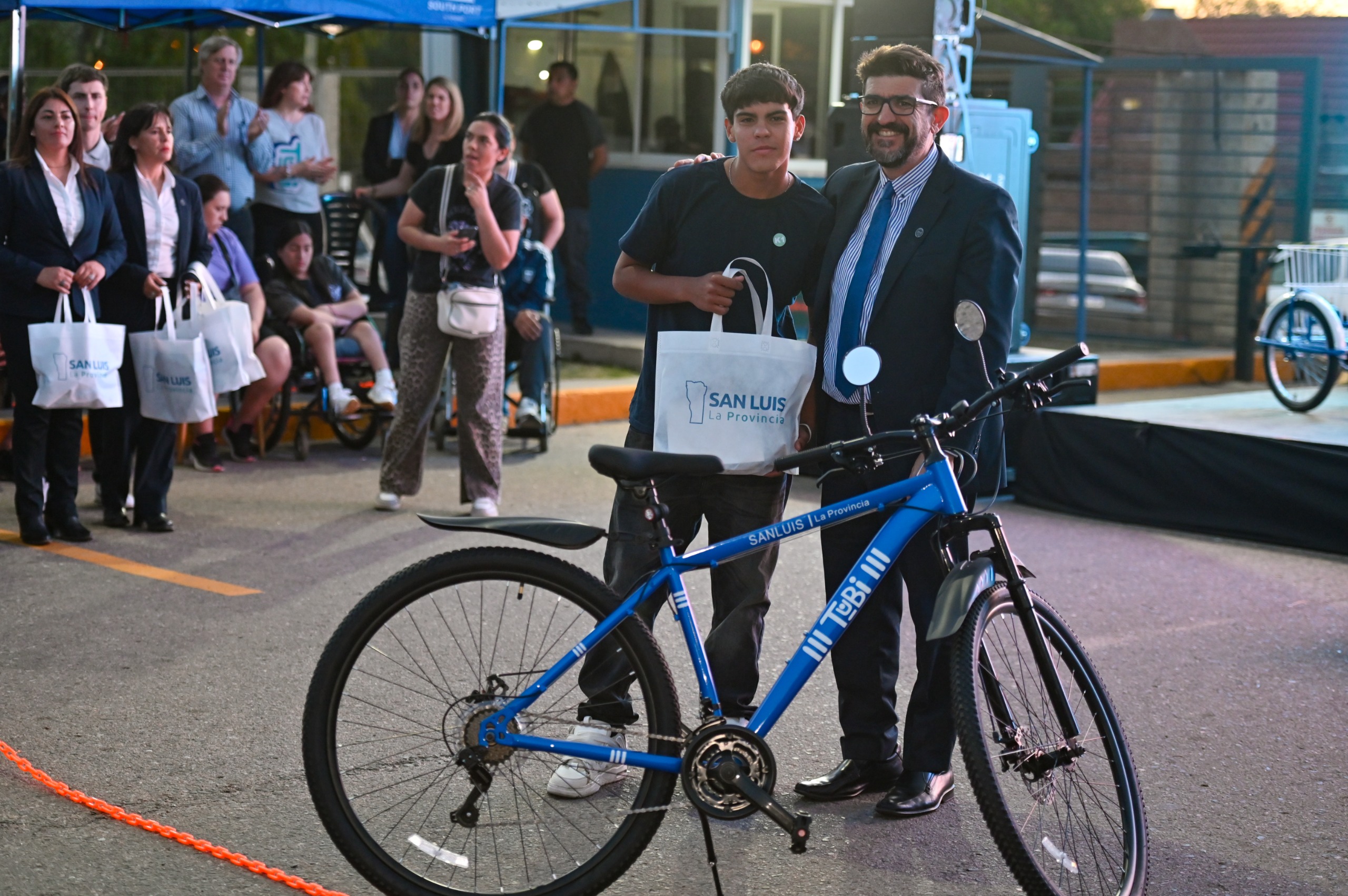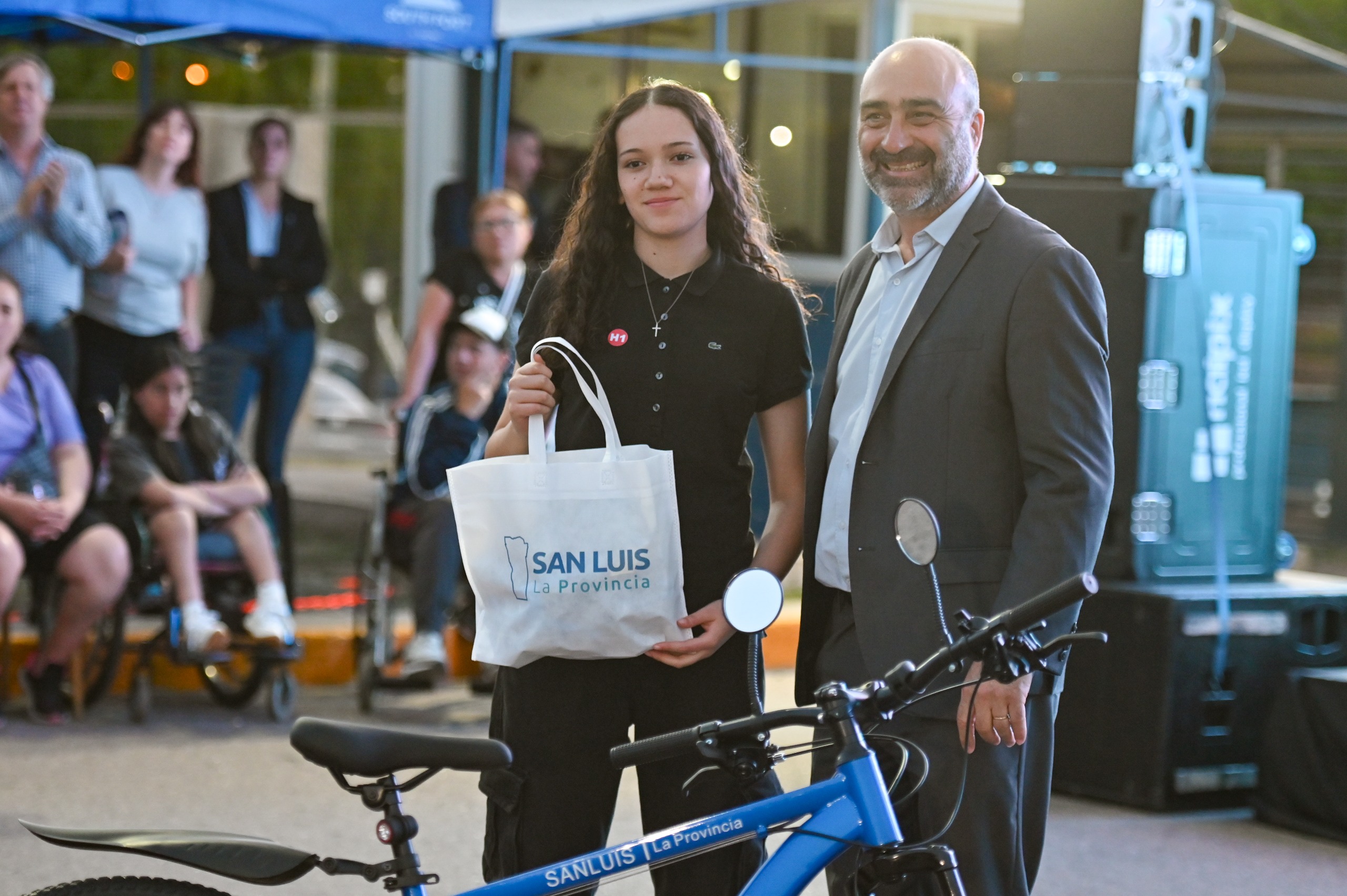 El momento más esperado llegó con la entrega simbólica. Un estudiante de cada escuela pasó al frente entre aplausos y música y obtuvo su rodado. Los 296 alumnos que recibieron la TuBi pertenecen a los siguientes establecimientos: Instituto Multidisciplinar ‘San Ignacio’, Escuela N°9 ‘Doctor Esteban Adaro’, Escuela Generativa ‘Club GEPU’, Escuela Nº7 ‘General Manuel Belgrano’, Escuela Nº312 ‘República de Chile’, Escuela Nº175 ‘General José de San Martín’, Colegio ‘San José’, Escuela Nº3 ‘Manuel Belgrano’, Escuela N°27 ‘Saturnino González Camarero’, Escuela Generativa ‘Club Sportivo Estudiantes’, Escuela Generativa ‘Profesor Guillermo Visco’ y Escuela N°192 ‘Maestro Rural Puntano’.