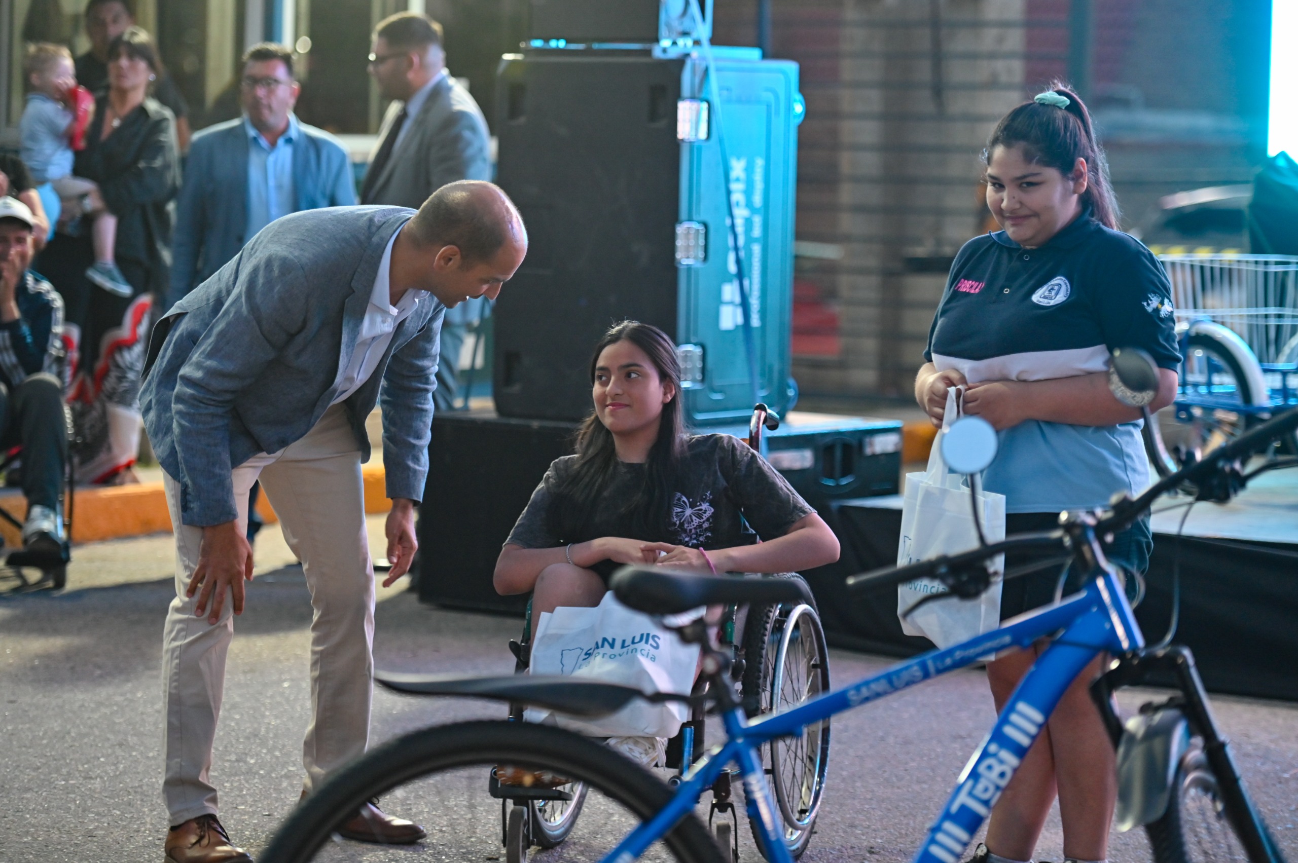 La emoción se profundizó con la entrega de bicicletas adaptadas a la estudiante de la Escuela ‘Carlos Juan Rodríguez’, Priscila Nievas; de la Escuela N°106 ‘Profesor Tomás Ferrari’, Milagros Gómez Oropel y de la Escuela N°40 ‘Dr. Ricardo Rojas’, Elian Cobos Benítez. El gesto fue una muestra clara del compromiso del Gobierno con la inclusión y la igualdad de oportunidades.