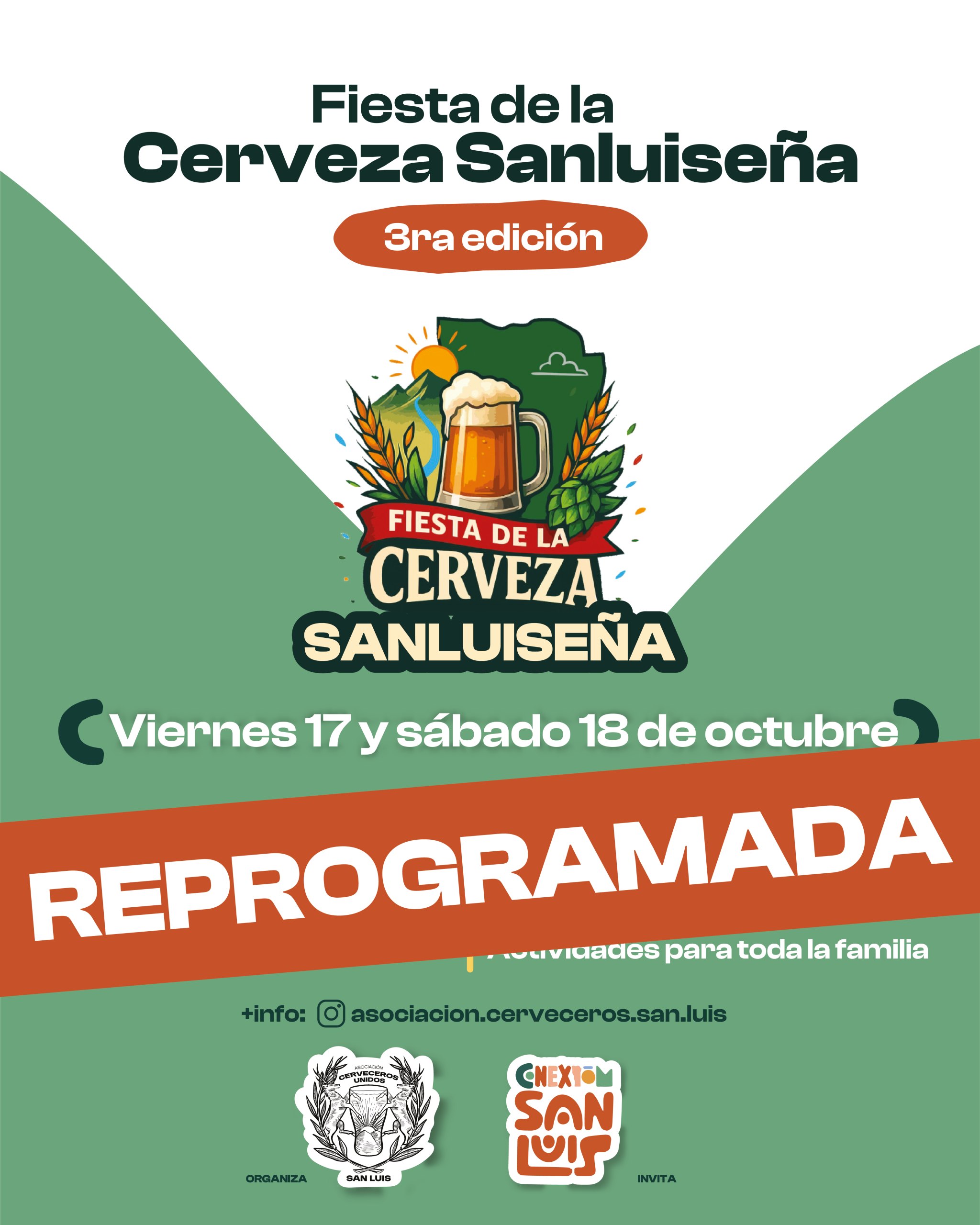 “Lamentamos informar que, debido a razones climáticas adversas, el evento de la Fiesta de la Cerveza que se iba a realizar los días 17 y 18 de octubre en Boxes de Potrero de los Funes se pospone para el 14 y 15 de noviembre. Sabemos que este fin de semana se esperan lluvias intensas y temperaturas bajas, por lo que creemos que es la mejor decisión para garantizar la comodidad y seguridad de todos.