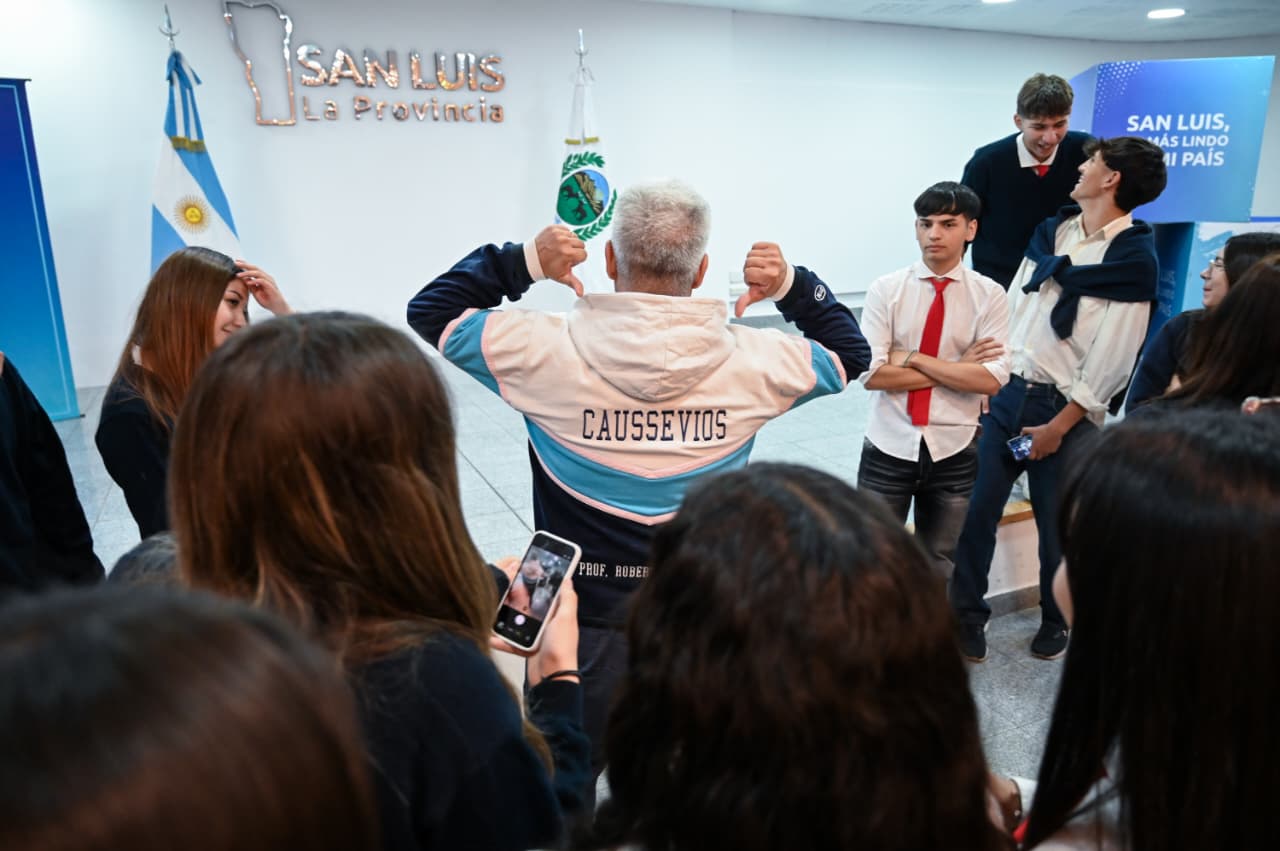 La actividad terminó con un divertido video para TikTok, que el Mandatario grabó con los chicos del Instituto Nuestra Señora del Carmen, con coreografía incluida. Y por supuesto, muchas selfies con todos.