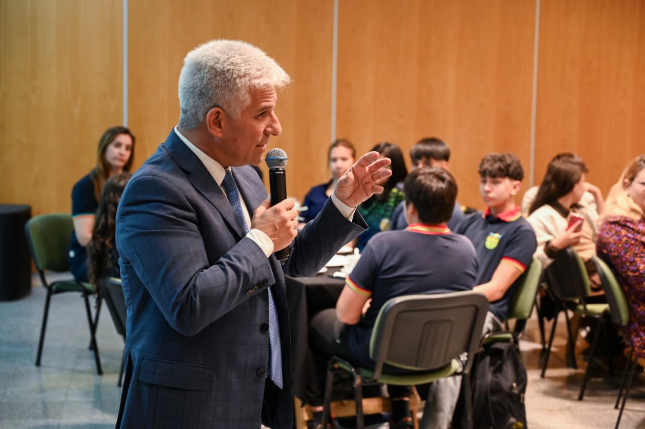 “La participación de los directivos en los colegios ha sido determinante, clave. Sin la predisposición, sin la colaboración, sin la contribución de los directivos de todos los colegios no hubiera sido posible recibir 42 trabajos: 38 estuvieron vinculados a la inteligencia artificial y cuatro a la aplicación de principios éticos respecto de las redes sociales“, detalló, e instó al auditorio a actuar de manera ética en todos los aspectos de la vida diaria.