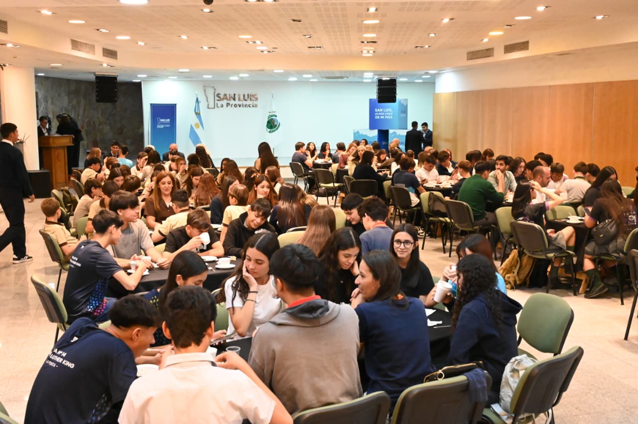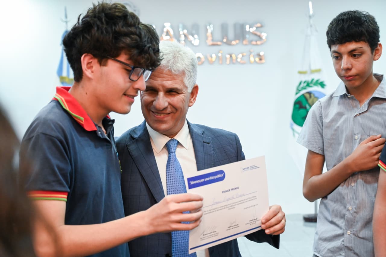 Este miércoles, el Salón Blanco de Casa de Gobierno se vio colmado por un centenar de estudiantes de cuatro escuelas de San Luis, Juana Koslay y Villa Mercedes que fueron premiados en el concurso ‘Jóvenes por una Ética Pública’. El certamen, organizado por la secretaría de ética Pública y Control de Gestión, buscó crear un espacio de reflexión sobre el uso de las redes sociales, la inteligencia artificial y los valores éticos para fomentar un pensamiento crítico y creativo. Para celebrar sus logros, el gobernador Claudio Poggi los agasajó con un desayuno.