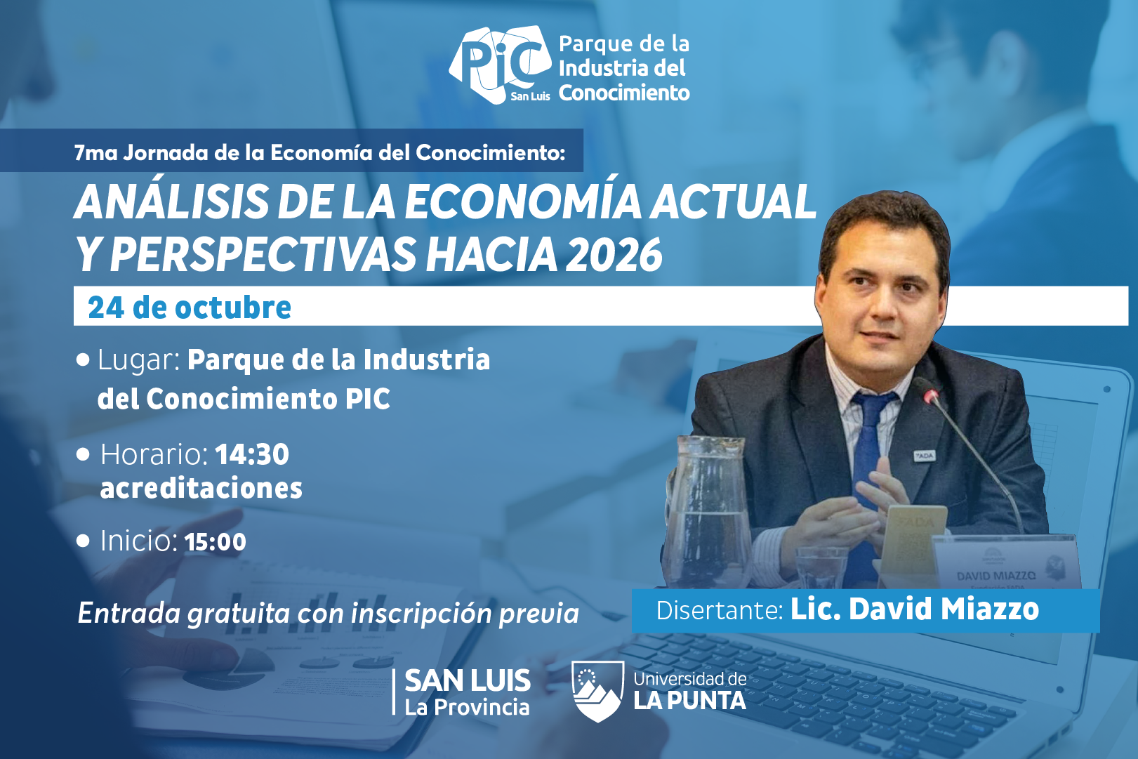 En un contexto donde anticipar decisiones resulta clave, la Universidad de La Punta (ULP) invita a participar de la charla ‘Análisis de la economía actual y perspectivas hacia 2026‘, a cargo del economista David Miazzo.