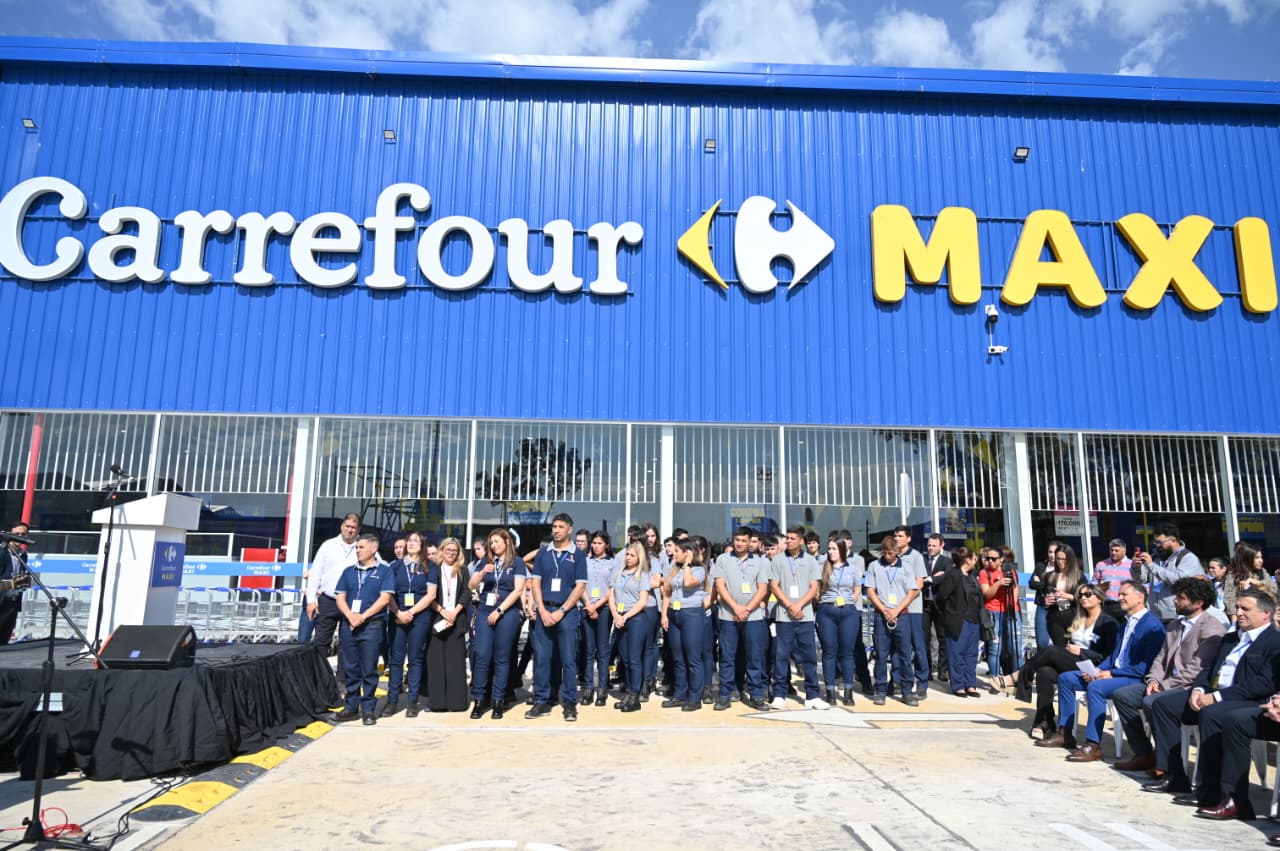 Un momento emotivo durante la apertura de la sucursal de Carrefour en la Zona de Actividades Comerciales fue cuando el gobernador Claudio Poggi se dirigió a los beneficiarios del Plan de Inclusión que aceptaron sumarse al nuevo desafío y a quienes les deseó éxitos.