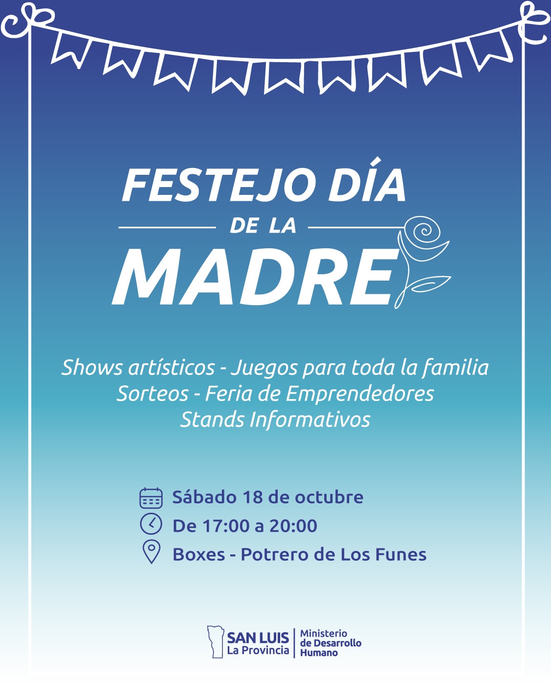 Pensado para toda la familia pero con el foco puesto en las madres, el Gobierno provincial realizará este sábado un evento en la zona de Boxes de Potrero de los Funes. Comenzará a las 17:00 y se extenderá hasta las 20:00.