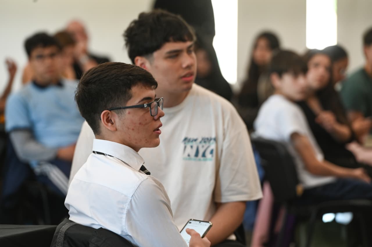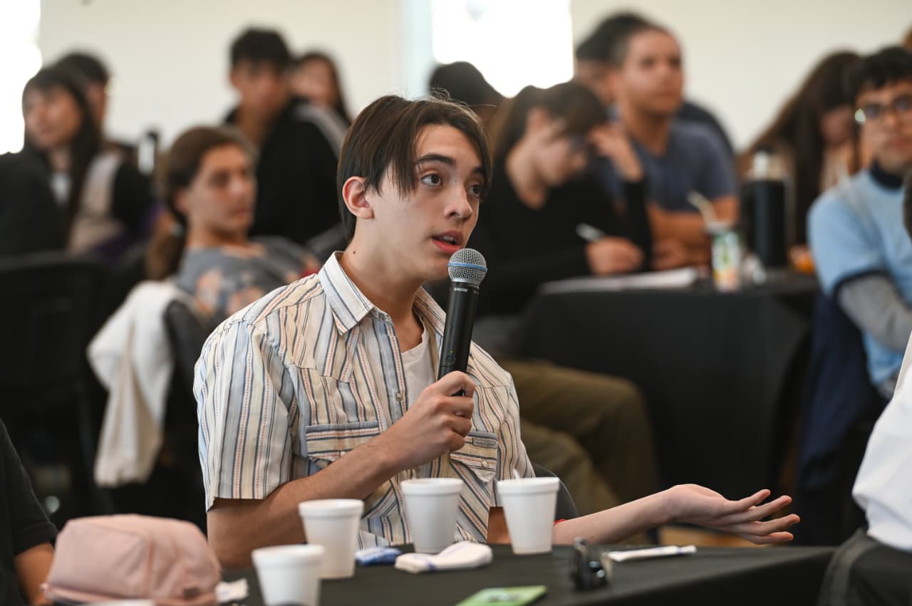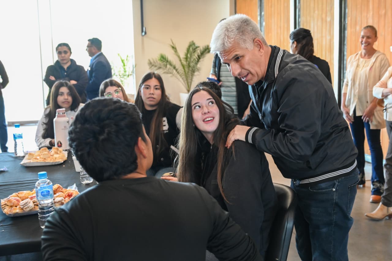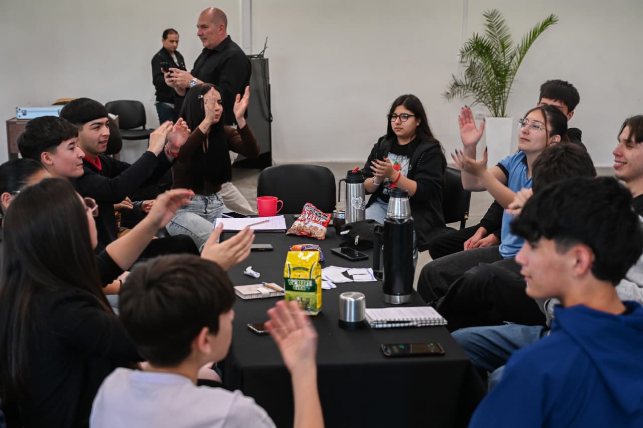 “San Luis necesita líderes estudiantiles como ustedes, que sean positivos y enseñen con el ejemplo, que trabajen en equipo y lo promuevan, que motiven. Líderes empáticos, que se pongan en el lugar del otro para comprender la situación”, apuntó. “Realmente, me saco el sombrero, ya que me contaron que en esta mesa hay tres chicos que van a competir con listas para el Centro de Estudiantes de la Condarco, y están compartiendo un desayuno y trabajando juntos; esto es lo que tienen que aprender los adultos. Ustedes son un ejemplo para los adultos que andan a los gritos porque, aunque uno gane, el otro va a acompañar. Van a trabajar todos por el bien común del grupo de estudiantes, así se hace“, celebró.