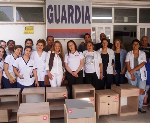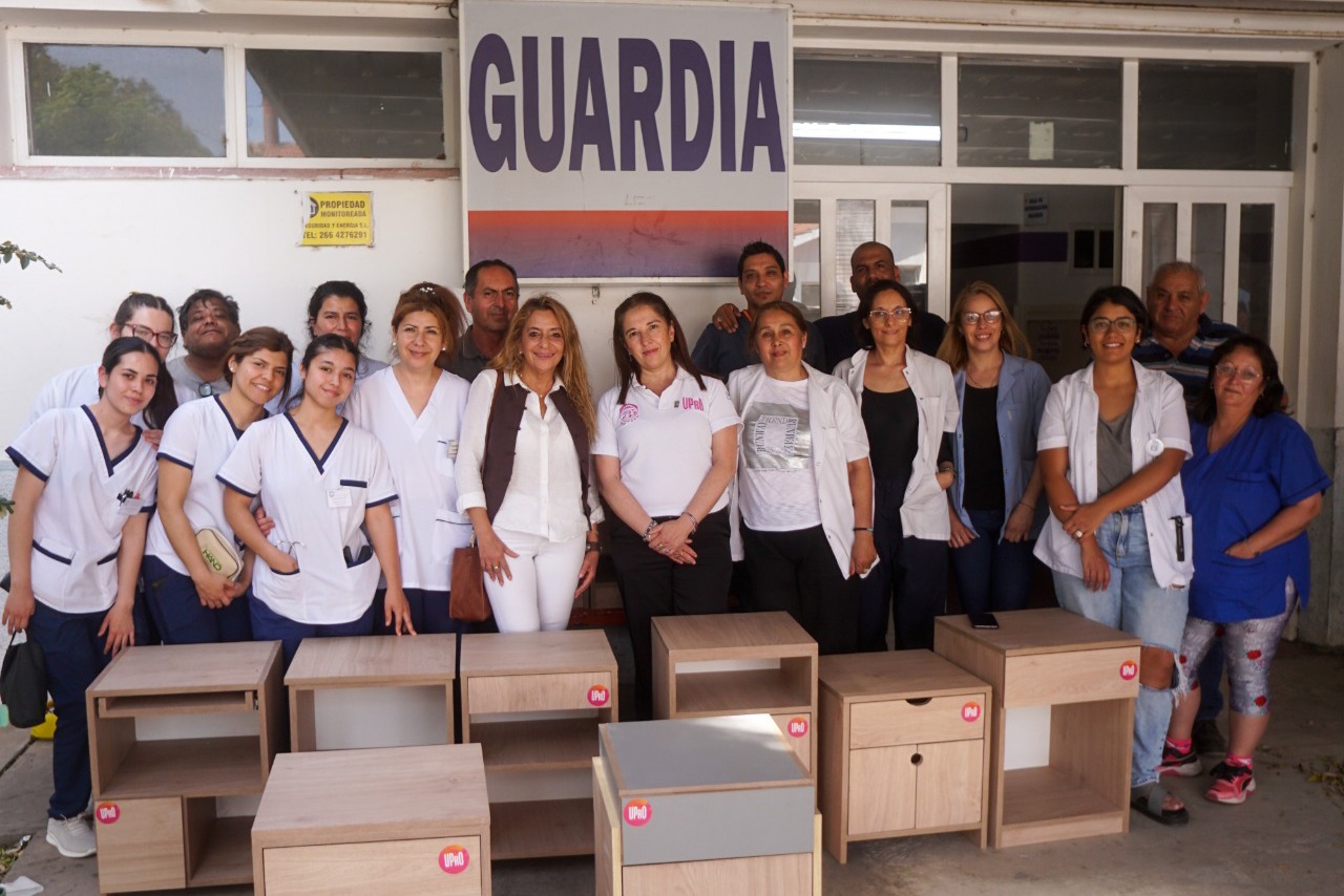 Posteriormente, se realizó una importante donación de equipamiento mobiliario al Hospital de Salud Mental. La directora, Magdalena Pfister Oliver, y el director Administrativo, Alejandro Fernández, recibieron un total de 11 mesas de luz de modelos variados. Estas piezas, confeccionadas en madera de MDF con herrajes y accesorios de primera calidad, fueron elaboradas con esmero por los alumnos de la carrera de Carpintería en MDF de ambos turnos en la sede UPrO Serranías Puntanas.