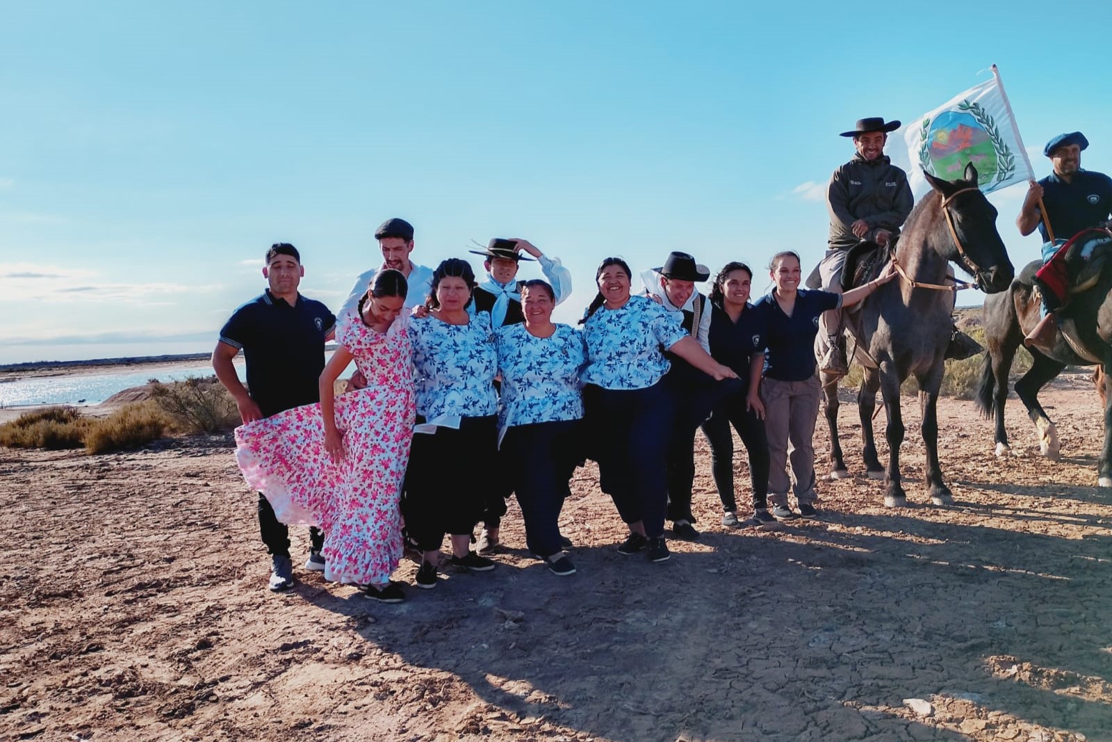 El área natural protegida de valor internacional, Lagunas de Guanacache, del Bebedero y del Desaguadero, se vistió de gala para recibir a la agrupación folclórica local, cuya imagen de presentación es en los azudes de la reserva.